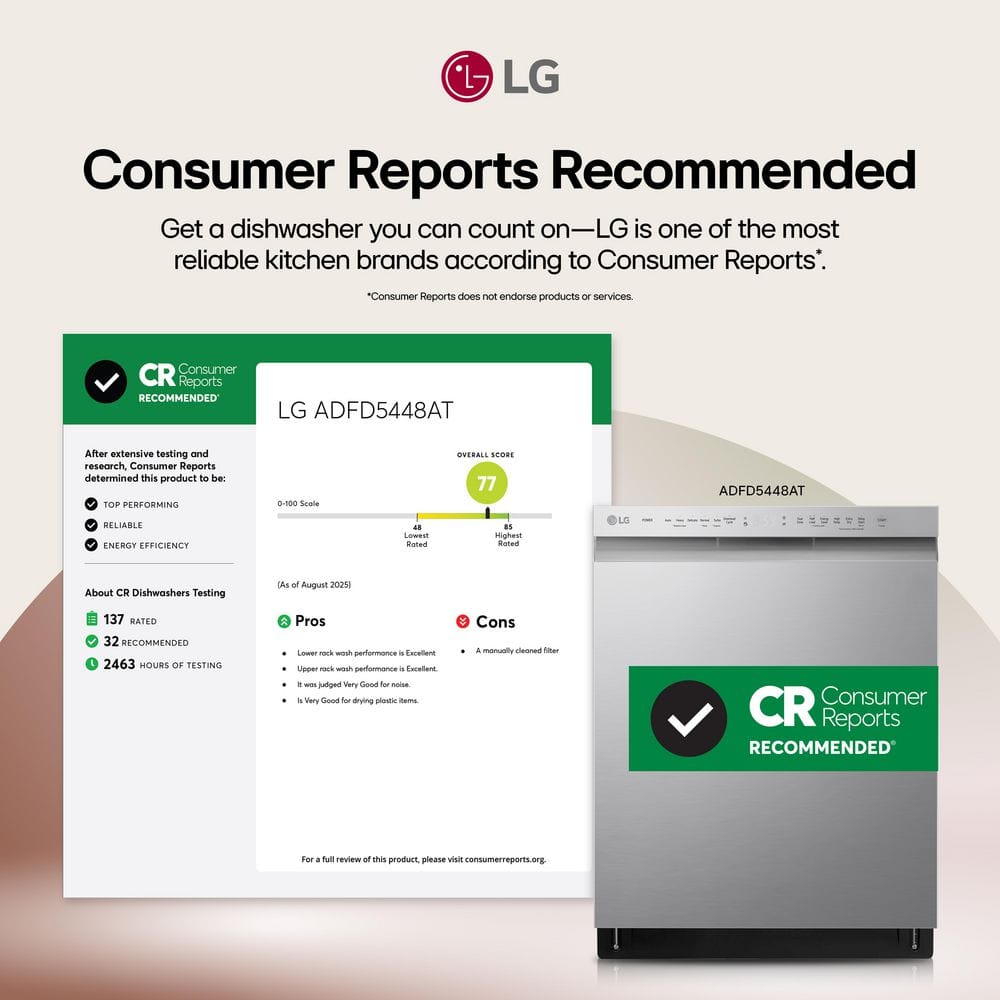 LG 24 in. Stainless Steel Front Control Built-In Dishwasher with Stainless Steel Tub, Quadwash, Dynamic Dry, ADA, 48 dBA