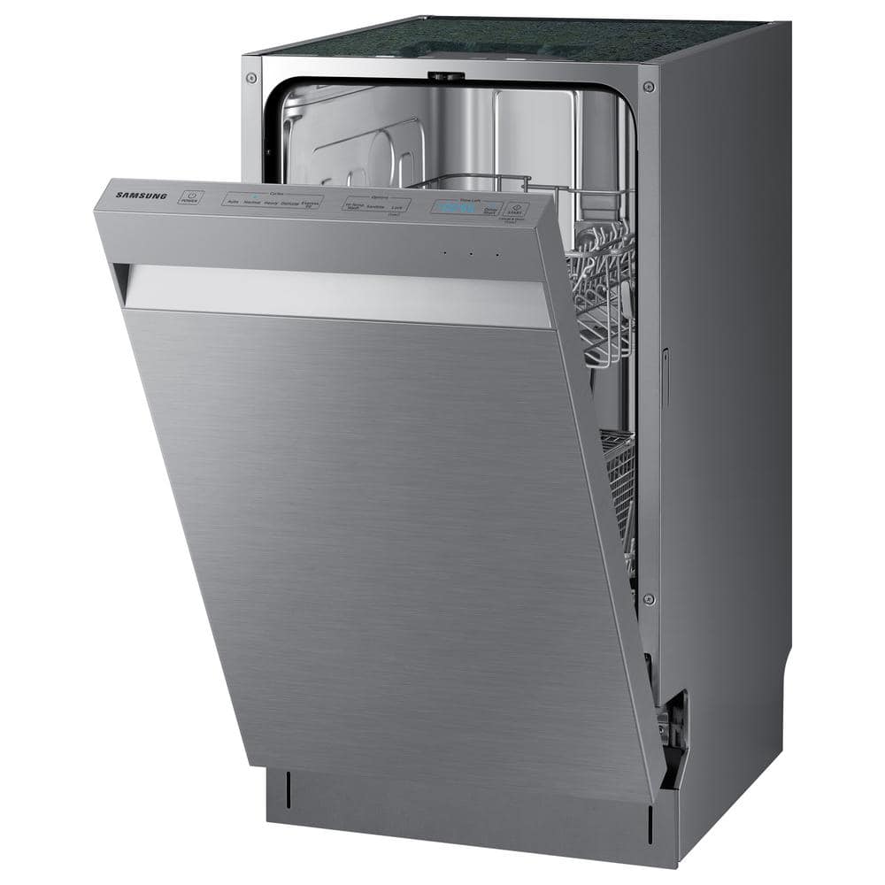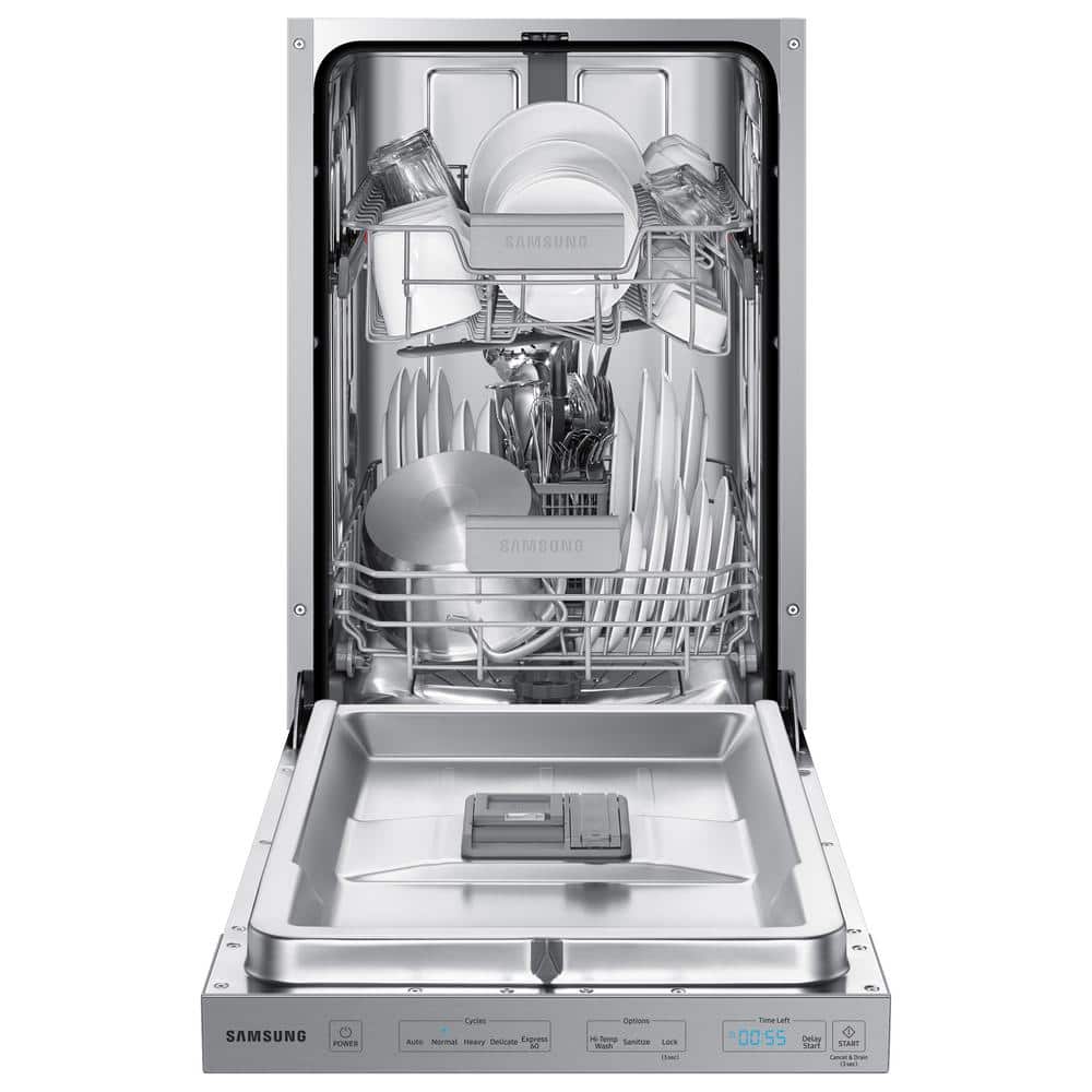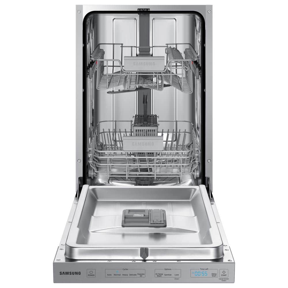 This Samsung 18 in. Top Control dishwasher combines superior cleaning power with small space-friendly proportions. An ADA compliant dishwasher and it offers whisper quiet cleaning so you can run it while you enjoy the comforts of home peacefully. Save time with AutoRelease Door which automatically opens after the wash cycle to circulate air and improve drying performance.
