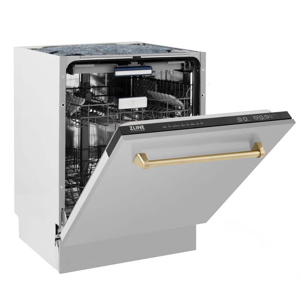 ZLINE Kitchen and Bath Autograph Edition 24 in. Top Control 8-Cycle Tall Tub Dishwasher with 3rd Rack in Stainless Steel & Champagne Bronze