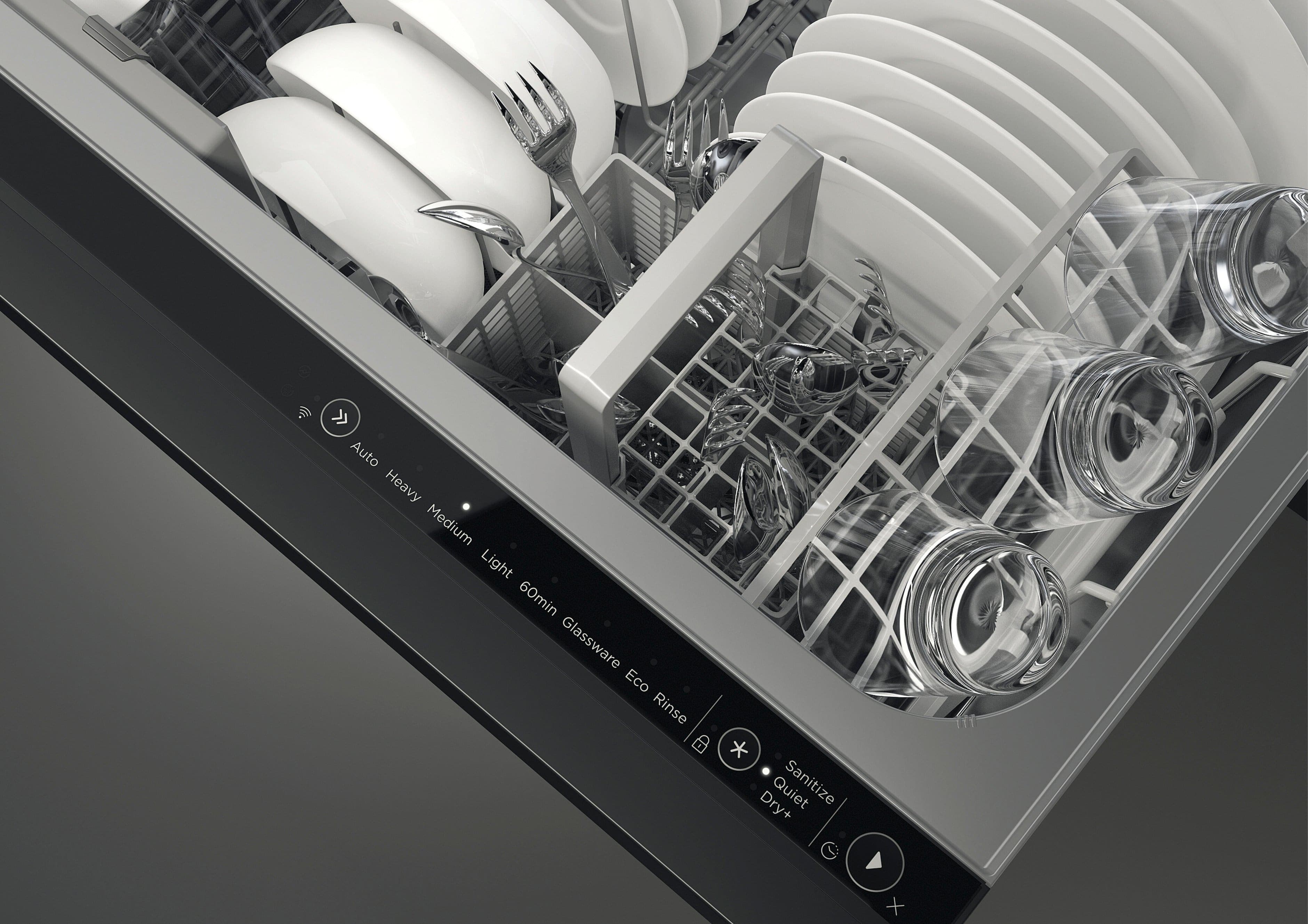 Integrates seamlessly into kitchen cabinetry. Each drawer features a premium stainless steel interior and operates independently, for flexible washing.