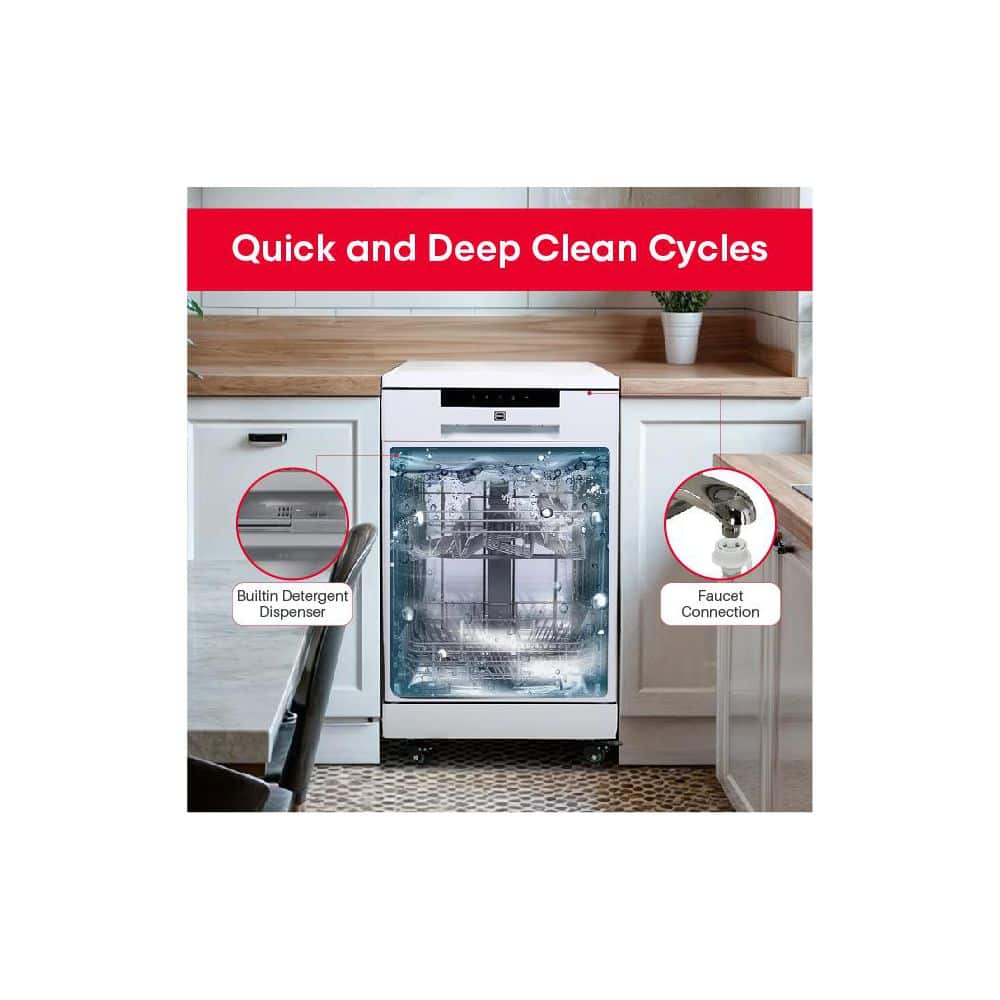 Washing dishes has never been more convenient or as easy as it is with this portable dishwasher. It is only 18 in. wide so it will easily fit in an apartment, mobile home or the cabin. However, it is large enough to accommodate an 8 piece place settings. With 6 wash programs you can choose the desired program according the soil level of your dishes. The sturdy castors make moving your dishwasher effortless. It is even Energy Star rated for year round energy and money saving.
