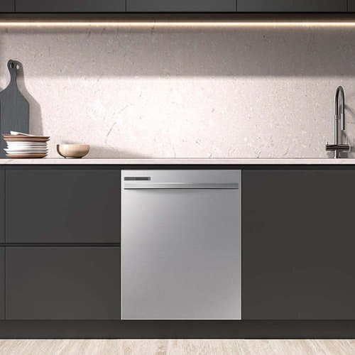 Thoughtfully designed with features that include a durable hybrid stainless interior door and the convenience of a height-adjustable top rack, which fits items of varying size and shape. With an extra-quiet dishwasher, enjoy a peaceful kitchen - without the background noise.