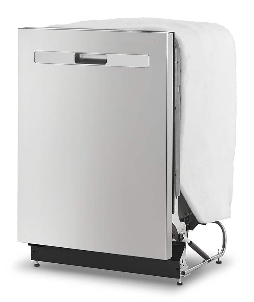 Clean dishes with a 51 dBA quiet dishwasher. A 3rd Rack lets you load hard-to-fit utensils to free up more space while the Fingerprint Resistant finish resists smudges and is easy to clean. This dishwasher also includes an Adjustable 2nd Rack to accommodate taller items and a Triple Filtration Wash System that filters food particles and cleans water between wash stages.