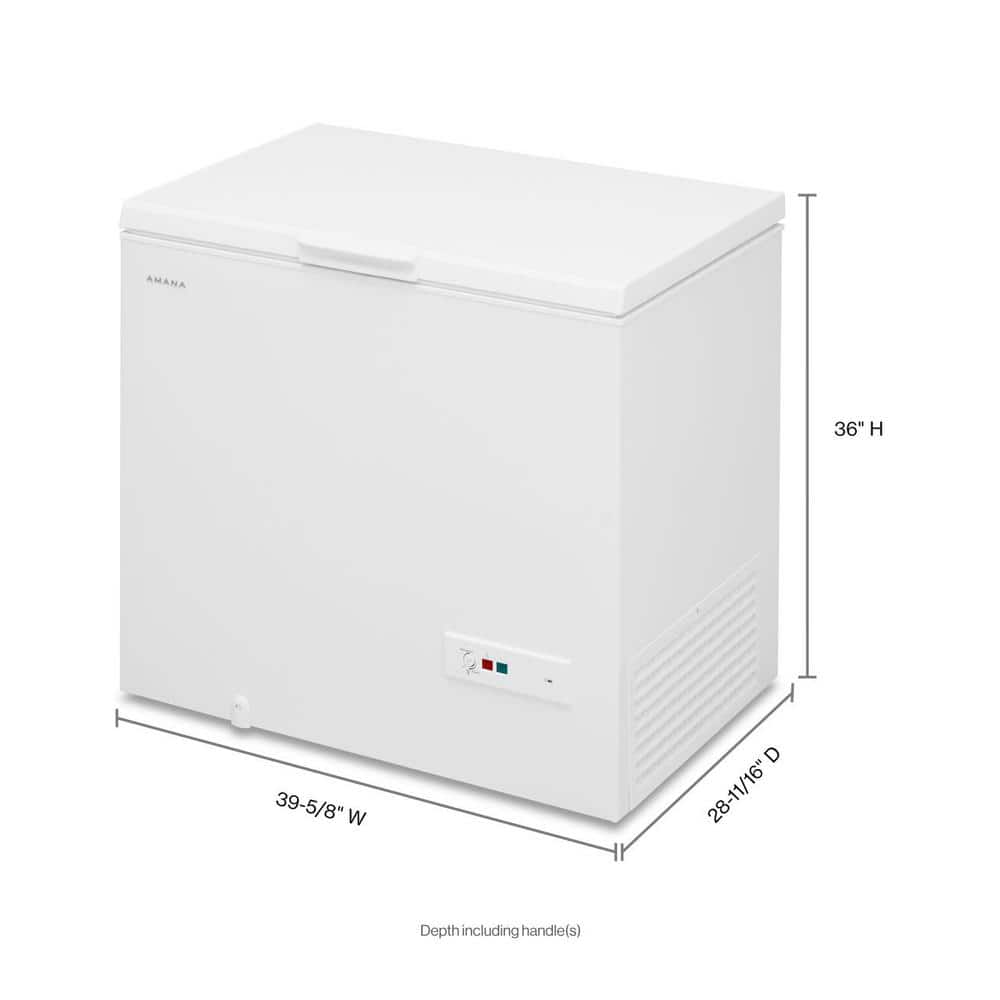 This 9 cu. ft. chest freezer from Amana can move with ease, thanks to the smooth motion of 2 Rollers. The Amana chest freezer keeps your favorite frozen foods frozen and well organized, so you can stock up, take time to savor and find what you need quickly and easily. Temperature monitor alarm included.