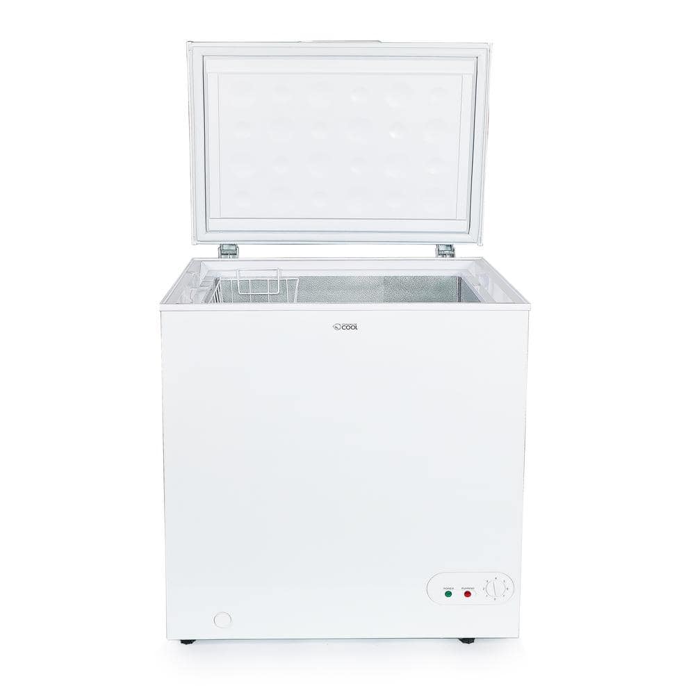 With a large 5.4 cu. ft. capacity this Commercial Cool chest freezer holds 189 lbs. of frozen food and features an adjustable thermostat so your food is always stored at the correct temperature. It opens from the top for easy access and has a removable food storage organizer basket that you can use for separating things like ice cream or breakfast foods. The space-saving, flat back design and small footprint allow you to put it in small areas flat against the wall or in a corner and the adjustable leveling legs keep it even without a hassle. It's ETL safety certified and uses 600a refrigerant that won't harm the environment. You'll never run out of freezer space with this compact but spacious freezer.