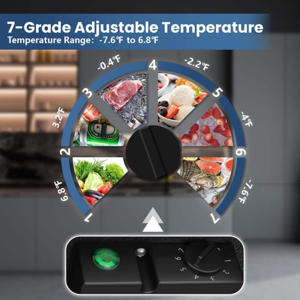 - 7-grade control offers temperatures from -7.6 to 6.8