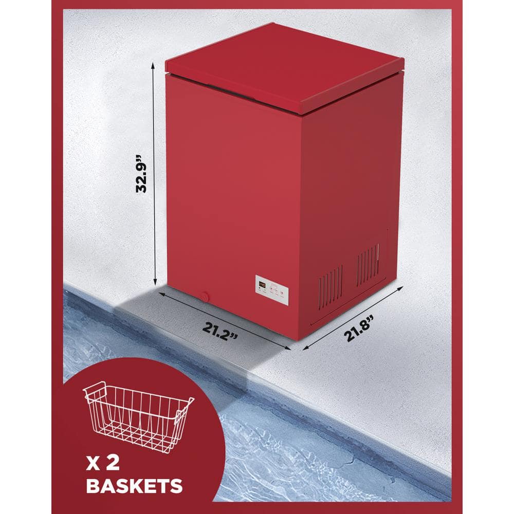 Deeshe 21.8 in., 3.5 cu. ft., Manual Defrost Chest Freezer Free-Standing Top Door Freezer in Red/Orange