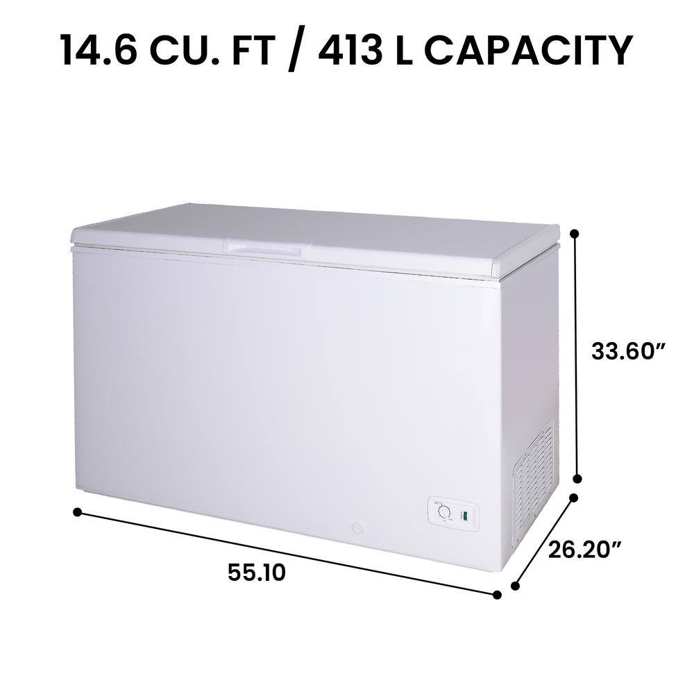 - 14.6 Cu. Ft (413L) capacity manual defrost freezer
