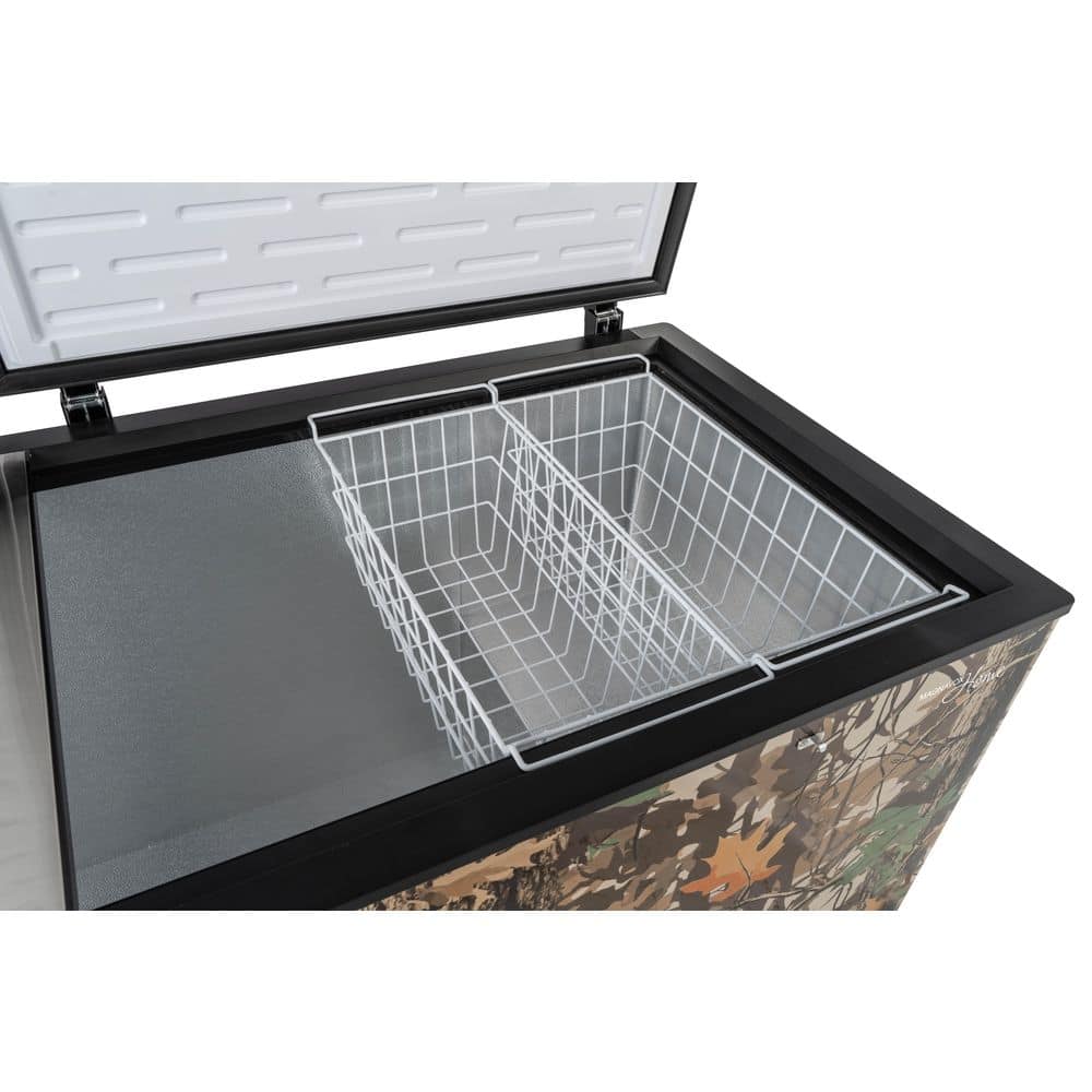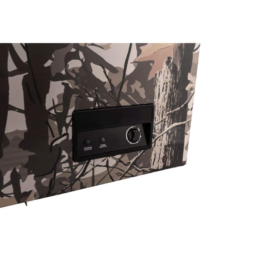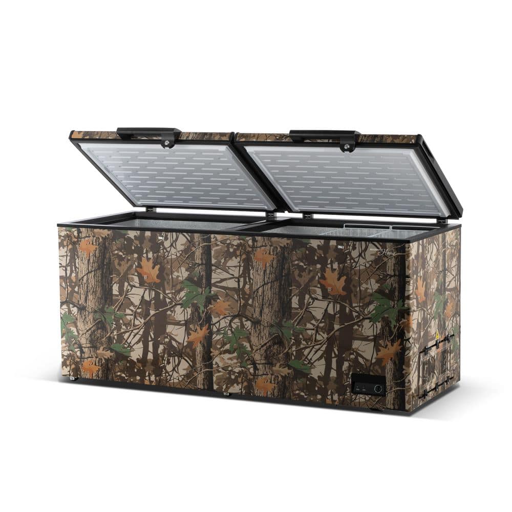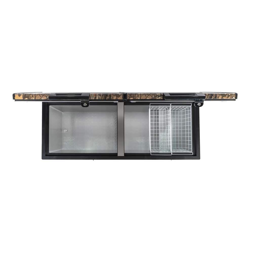 Designed for outdoor enthusiasts, this 21-cu. ft. camo chest freezer delivers generous storage for game, fish, and bulk foods while adding a rugged, distinctive look. Dual top-opening lids provide easy access and better organization, while the garage-ready design maintains consistent temperatures in extreme conditions from 0°F to 110°F. With external temperature controls, a power-on indicator, and a convenient defrost drain, it's built for reliable performance and simple maintenance.