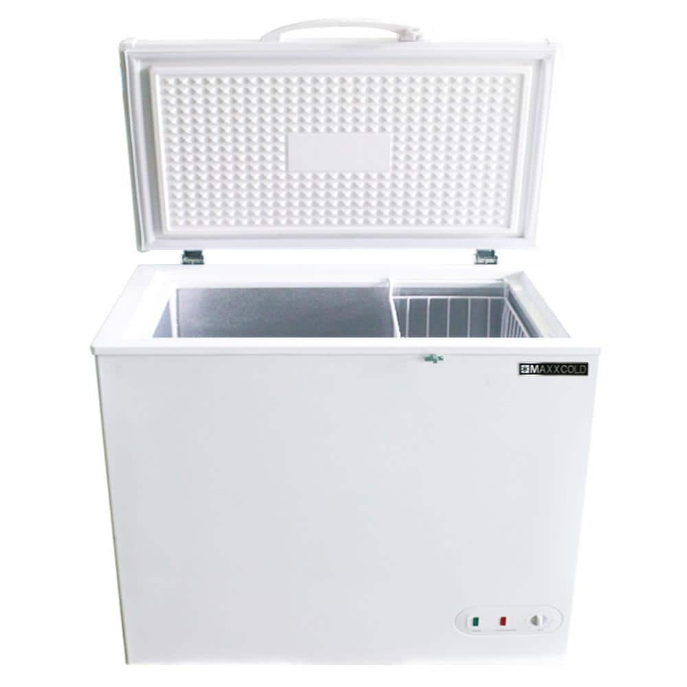 Maxx Cold Select Series solid hinged lid chest freezers are excellent for safely storing frozen food such as meat, packaged foods, ice cream, vegetables, desserts and bags of ice. The subzero chest freezer keeps frozen food product at the ideal storage temperature to maintain quality, taste, extended product life and prevents freezer burn as well as the development of ice crystals. Due to the hinged top lid design, frozen food product is easily accessible when it's time to use. Interior storage basket is included to help you organize your products, allowing you to quickly locate and retrieve what you need. Designed with an oversized refrigeration system, this unit can be installed and used safely in a garage even if the temperature drops to 0 degrees F or rises above 100 degrees F. The hinged lid includes a lock and key to prevent unauthorized access to the contents. The freezer is sized to pull down its content temperature level if loaded with pre-chilled products (recommended loading temperature for all products is less than 41 degrees F/ 5 degrees C). The storage freezer will provide years of reliable operation if properly maintained and its white coated exterior is easy to wipe down and clean. Perfect for convenience stores, concession stands, ice cream shops, restaurants, bars, or your home.