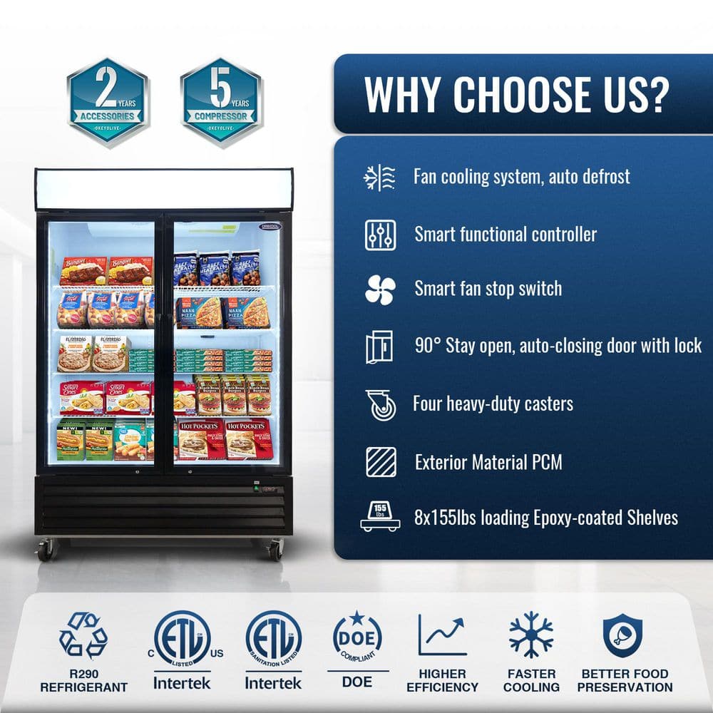 Biscayne Bay 54 in. 44.7 Cu. Ft. Commercial Auto / Cycle Defrost Merchandiser Upright Freezer in Black with Glass Door and LED Panel