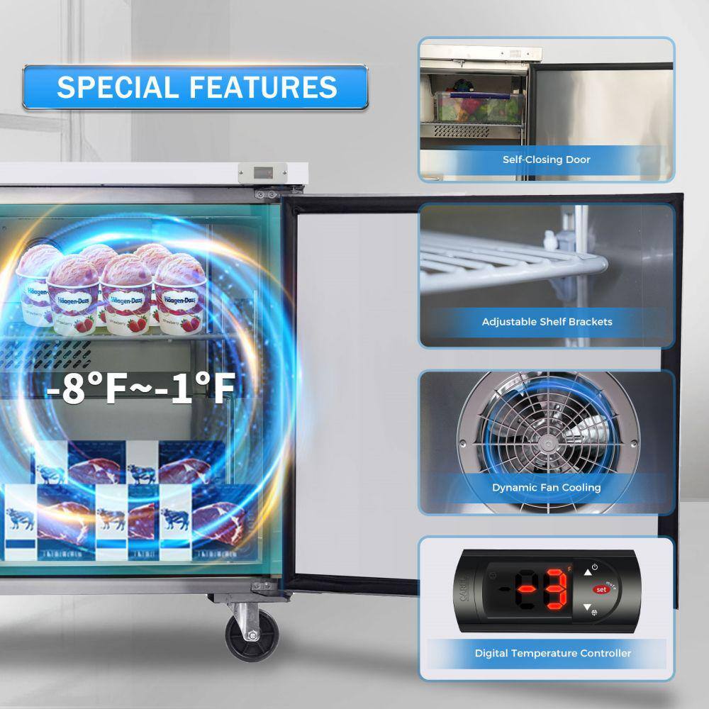 Koolmore 12 cu. ft. Commercial Upright Freezer 2-Door Undercounter with Worktop in Stainless Steel