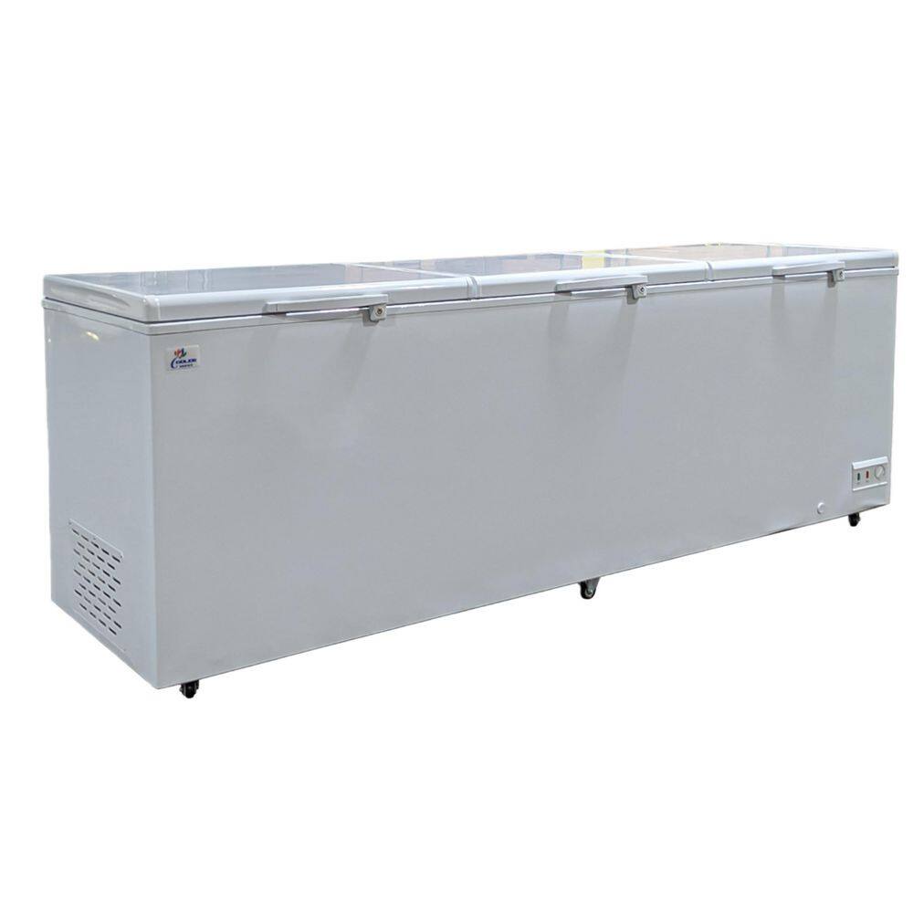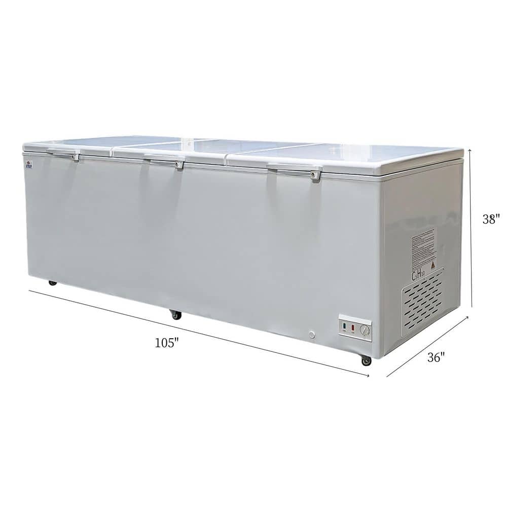 Cooler Depot present you, 105 in. W 47 Cu. ft. Manuel Defrost Commercial Island Chest Freezer in White. It is a real solid freezer with 47 Cu. ft capacity. The large capacity of this unit is perfect for food storage, especially large items like lamp legs, whole tuna or chunks of rib. Depending on what you plan to store in this unit, it has 3 adjustable modes for you to choose. 50° to 32°, 30° to 19° and 17° to 0°.