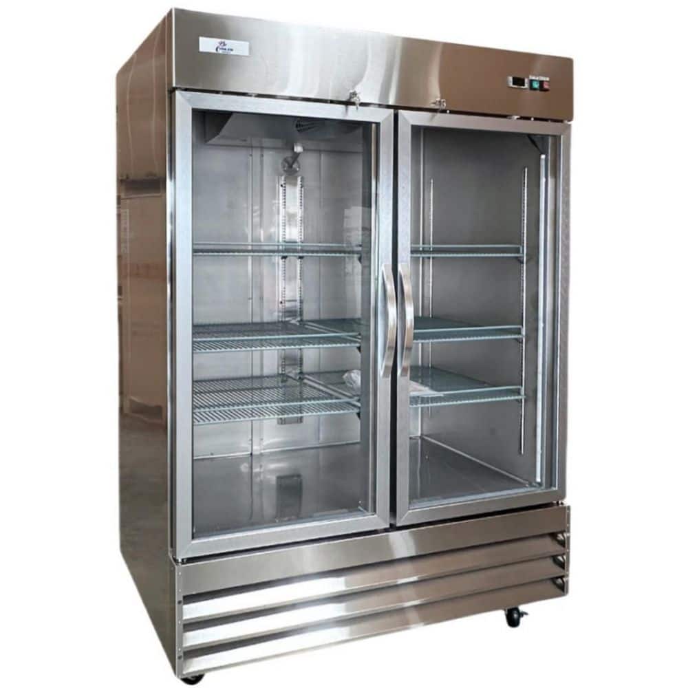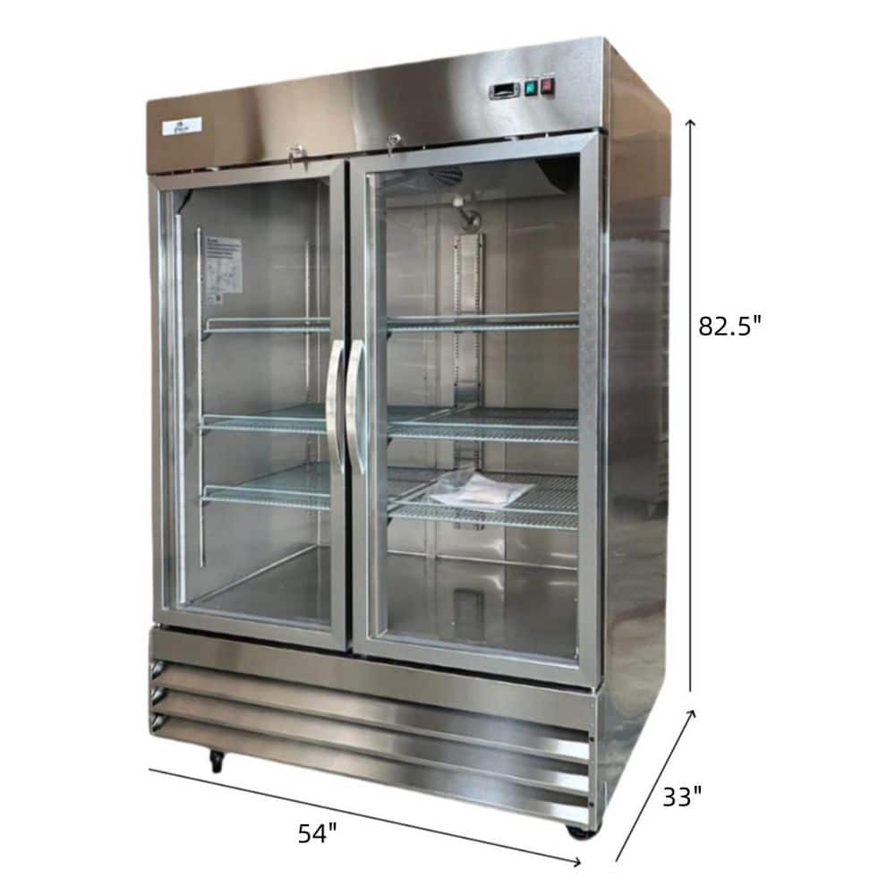 Introducing the NSF-Certified Two-Glass-Door Stainless Steel Commercial Freezer-a robust, high-capacity solution designed to excel in fast-paced foodservice environments. Engineered with a durable stainless-steel exterior, it easily withstands the rigors of a busy kitchen while offering a polished, professional appearance.Inside, LED lighting illuminates every corner, and adjustable wire shelves let you customize the layout to accommodate everything from large trays to small packaged items. A heavy-duty refrigeration system maintains stable sub-zero temperatures, ensuring consistent product quality and reducing the risk of spoilage.Meanwhile, the digital temperature controller delivers precise climate management, and the self-closing door mechanism helps minimize cold-air loss-particularly valuable in high-traffic settings.Certified to NSF standards, this freezer meets strict sanitation requirements through easy-to-clean interiors and removable door gaskets. Rounded interior corners reduce hard-to-reach spaces, while optional casters let you quickly reposition the unit for thorough cleaning or layout changes.The result is a commercial freezer that seamlessly combines efficiency, hygiene, and convenience, making it an excellent choice for restaurants, cafes, grocery stores, or catering operations that demand both performance and style.