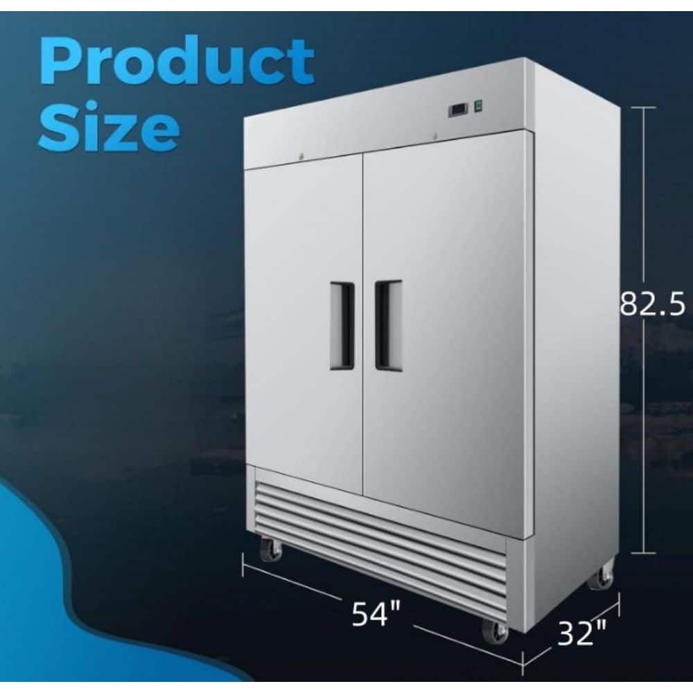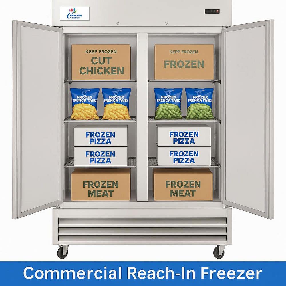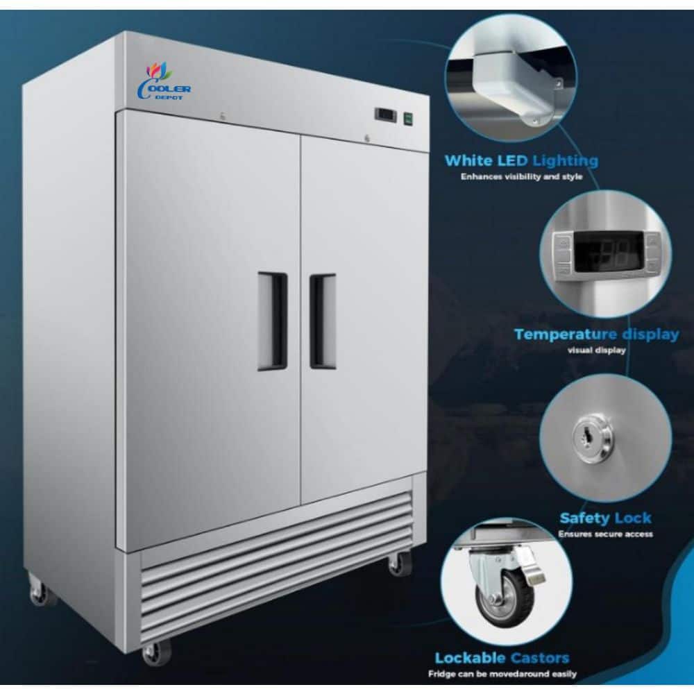 Cooler Depot 54 in. W 47 cu. ft. NSF Auto Defrost 2-Door Commercial Reach In Upright Freezer in Stainless Steel