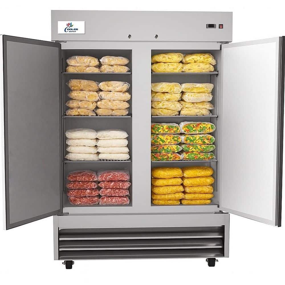 Cooler Depot 54 in. W 48 cu. ft. NSF Auto Defrost 2-Door Commercial Reach In Upright Freezer in Stainless Steel