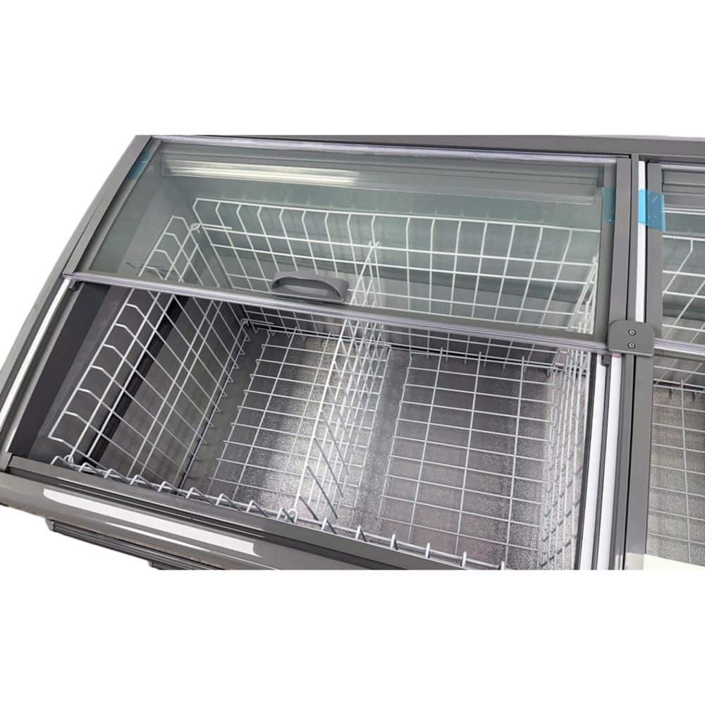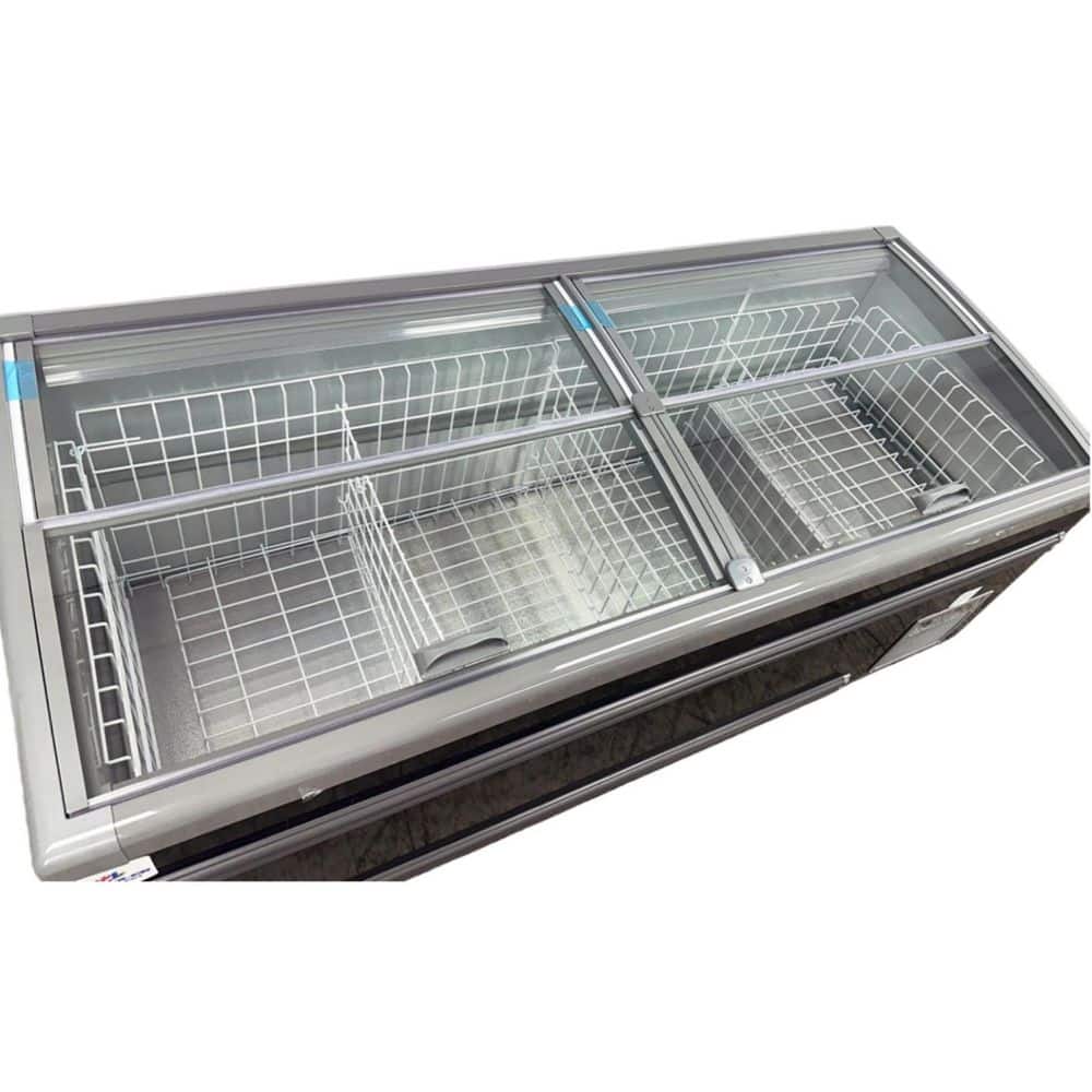 The 83 inches Frozen Meat Food Display Freezer NSF CQH22L is a commercial-grade display freezer designed for showcasing frozen meat and food products. This freezer adheres to the NSF (National Sanitation Foundation) standards, ensuring high-quality construction and hygiene. With a length of 83 in., it provides ample space for storing and displaying a variety of frozen items. Key features of the freezer include a spacious interior with multiple shelves, allowing for organized storage and easy access to different products. The display doors are designed for visibility, allowing customers to view the contents without compromising the internal temperature. The freezer is equipped with a reliable cooling system to maintain optimal temperatures for preserving the quality and freshness of frozen goods. The NSF certification signifies that the freezer meets industry standards for safety, sanitation and performance. This makes it suitable for use in commercial kitchens, supermarkets or any food-related business where compliance with hygiene regulations is crucial. The durable construction, ample storage capacity and compliance with NSF standards make the 83 inches Frozen Meat Food Display Freezer NSF CQH22L a reliable and efficient choice for businesses seeking a high-quality freezer for showcasing and preserving frozen food items.