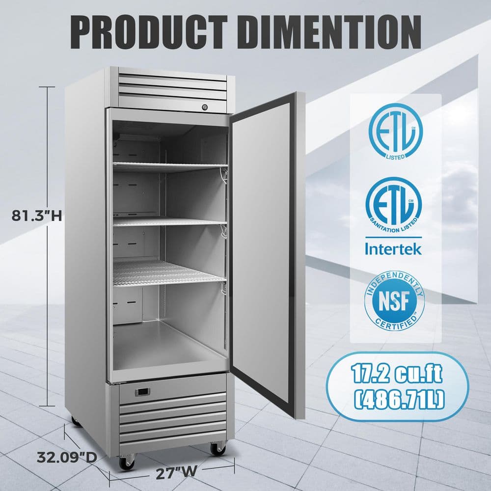 Elite Kitchen Supply 29 in. 23 cu. ft. Frost Free Defrost Upright Freezer Commercial One Door Freezer EKS20F in Stainless Steel