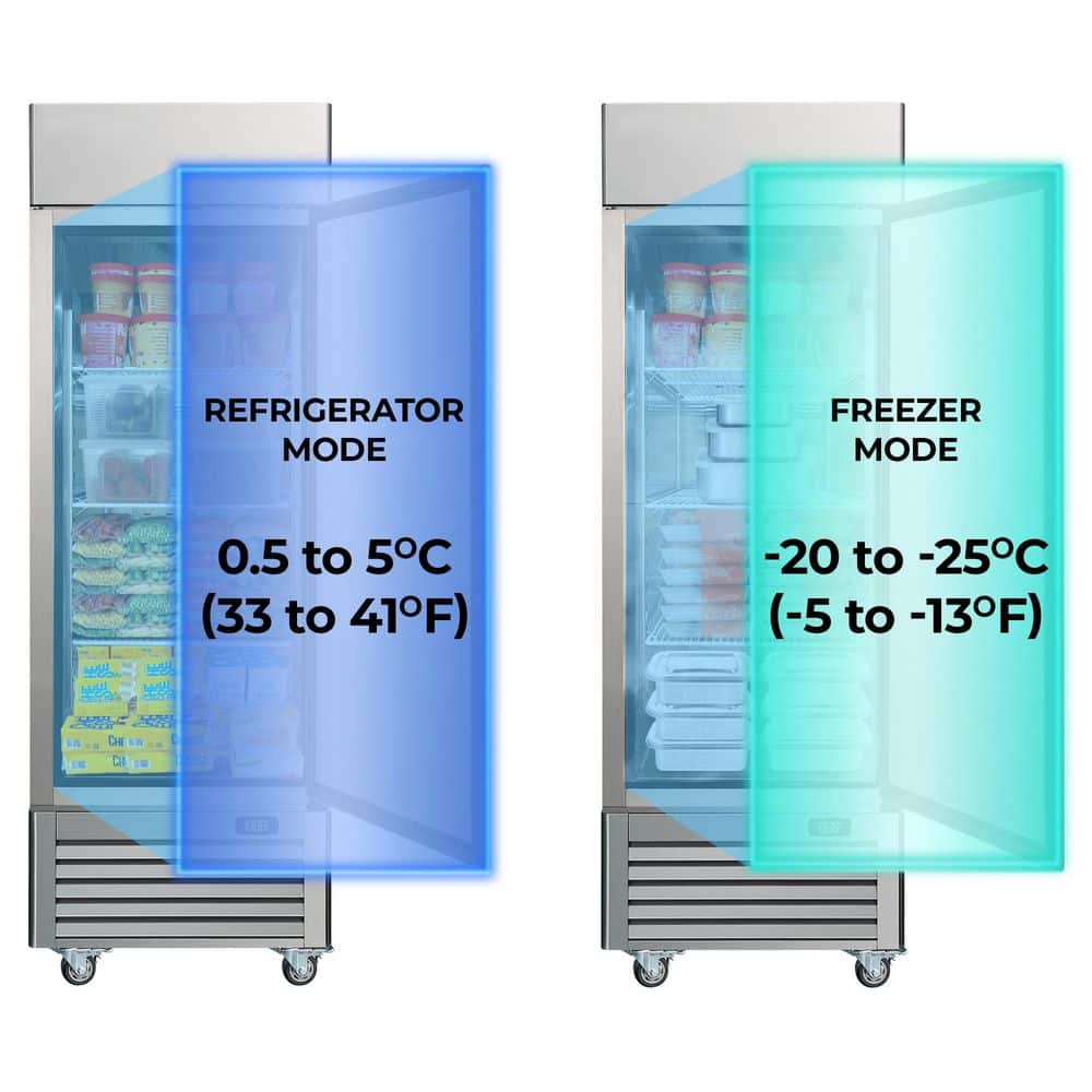 23 cu. Ft. Stainless steel reach-in freezer is ideal for commercial venues like restaurants and hotels. Convertible design adapts to your food storage needs. Digital temperature controls and adjustable shelves ensure precise storage conditions.