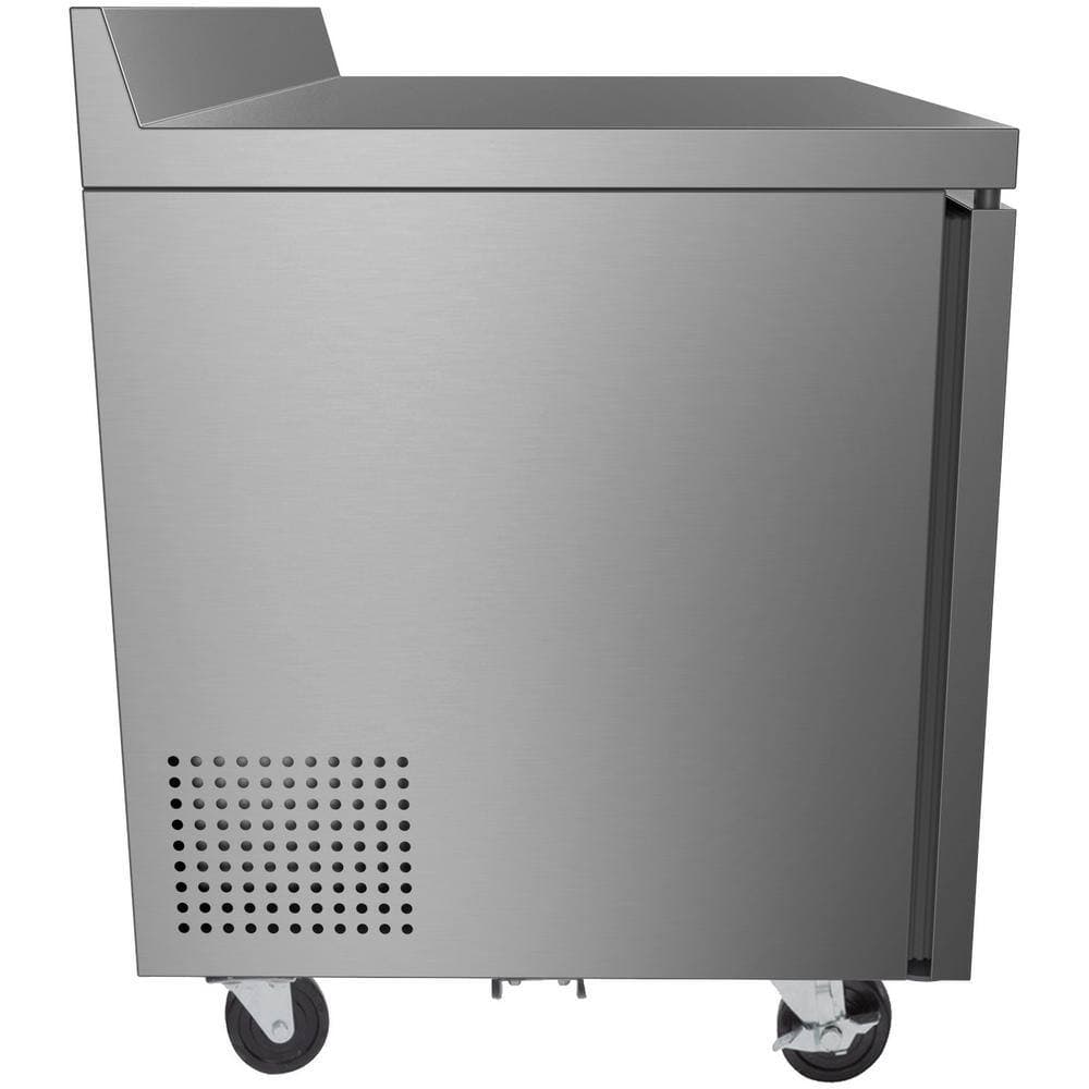 The Koolmore Commercial Worktop freezer is made of gleaming 430 type stainless steel and topped with a generous worktop space, making it ideal for restaurants, hotels, cafeterias, and all commercial kitchen use. This 2-door industrial freezer has recessed handles for easy access, and self-closing features to ensure that food remains fresh. The two adjustable shelves hold up to 90 lbs. and are coated in epoxy for maximum corrosion resistance. Temperature is easily monitored and controlled by the internal wall mounted thermometer and external digital controls. It's 4-casters, two front locking, make it smoothly portable for flexible kitchen convenience. Highly certified: ETL Listed for Safety and Sanitation, making it NSF ANSI 7-Standard for Commercial Refrigerators. It's time to make your kitchen more. It's time for Koolmore.