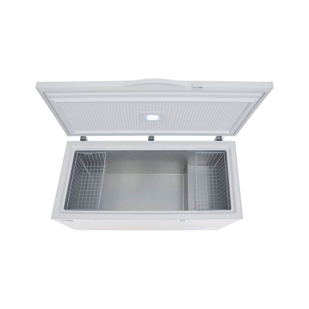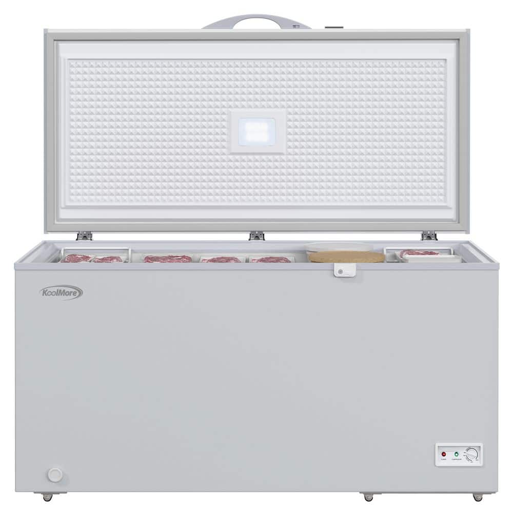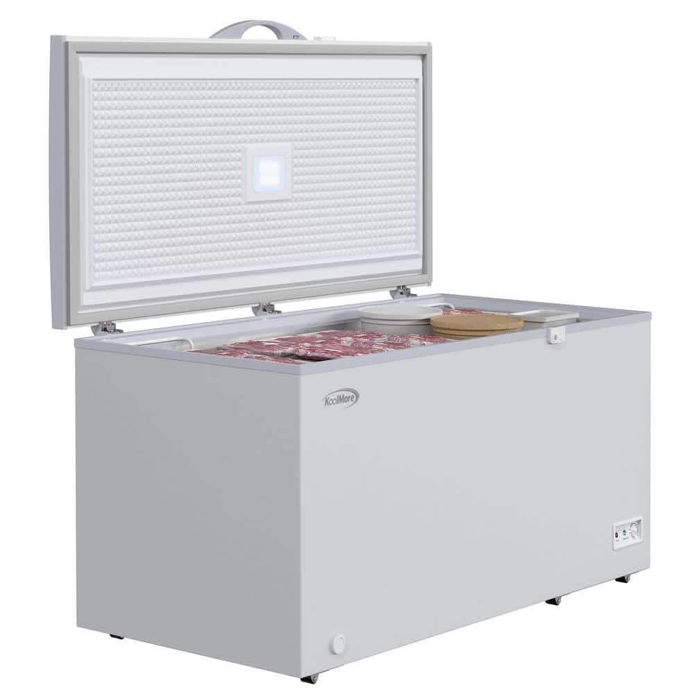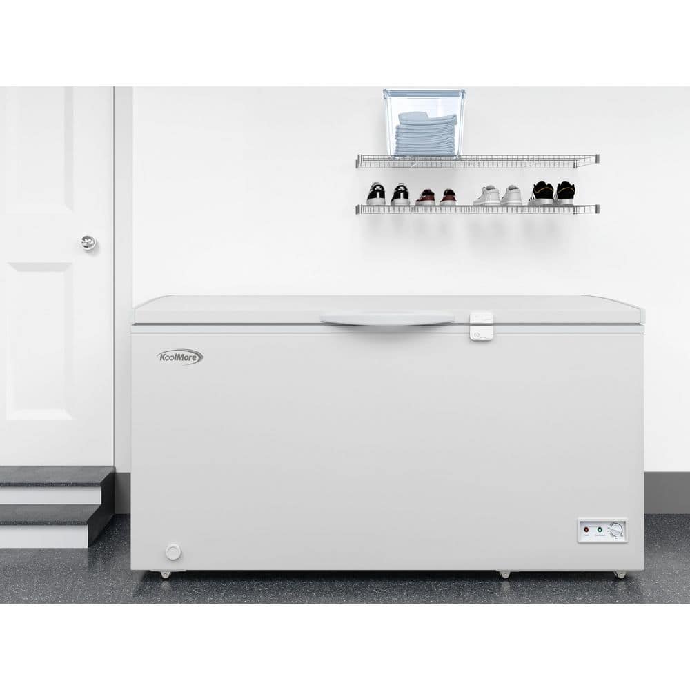 Often times you need more storage space, especially if you need to store lots of meat or every day goods for your family, guests, or customers. That's why the Koolmore Chest Freezer with 15.9 cu. ft. of storage provides the ideal storage area you need for storing beef, steaks, ice cream, pre-made meals, and so much more.All with eco-friendly refrigerant that helps maintain optimal temperatures better and more efficiently than standard freezers. A deep, wide-open design that offers 15.9 cu. ft. of space, this indoor freezer with two epoxy-coated steel baskets and two standing ledges lets you organize your food more effectively.Our compact freezer boasts a full one-piece lid design that makes it easier to open up to view the entire contents and identify and access your food more quickly.Featuring a beautiful, white-painted steel exterior with a silver aluminum interior our chest freezer pairs well with almost any setting. It easily blends into your room or storage area while providing much-needed organization where you need it most.