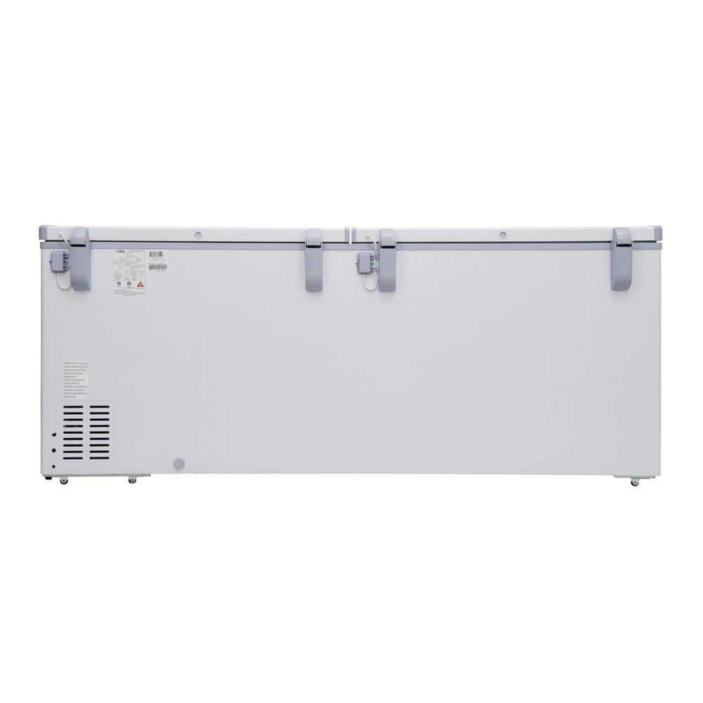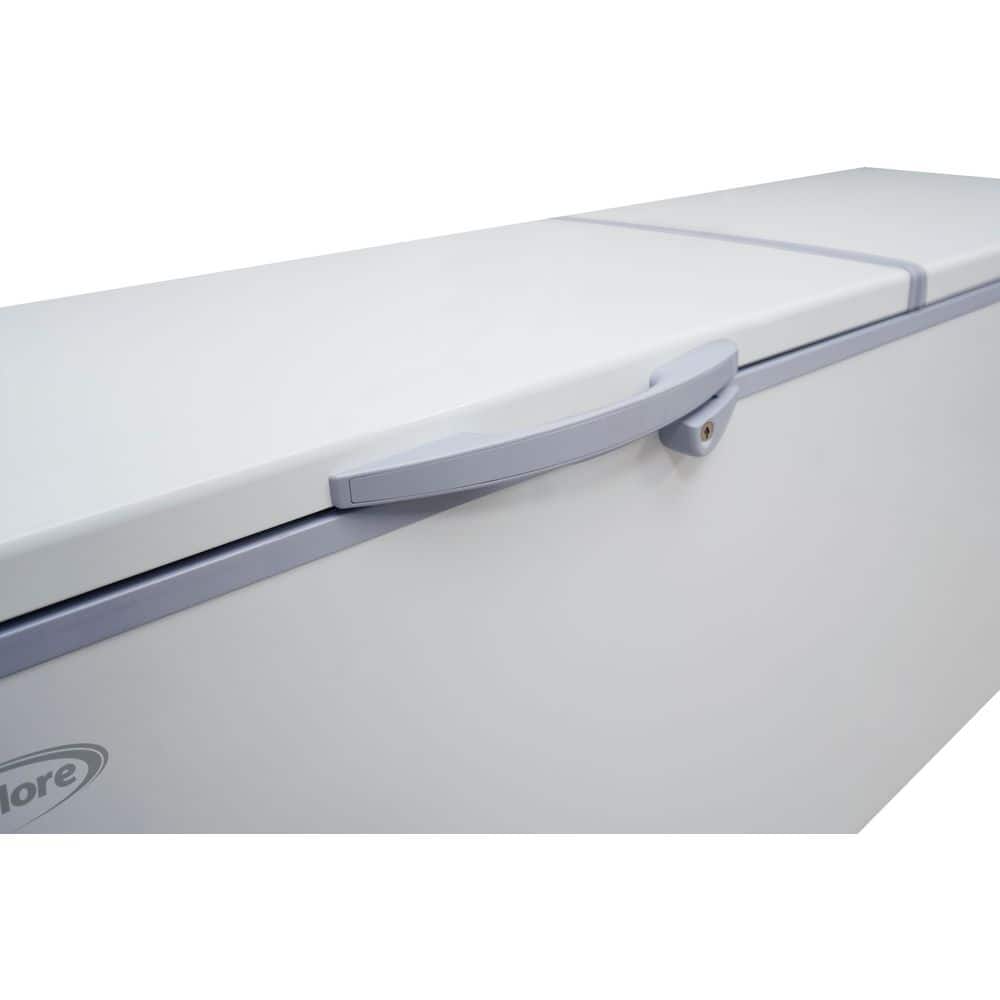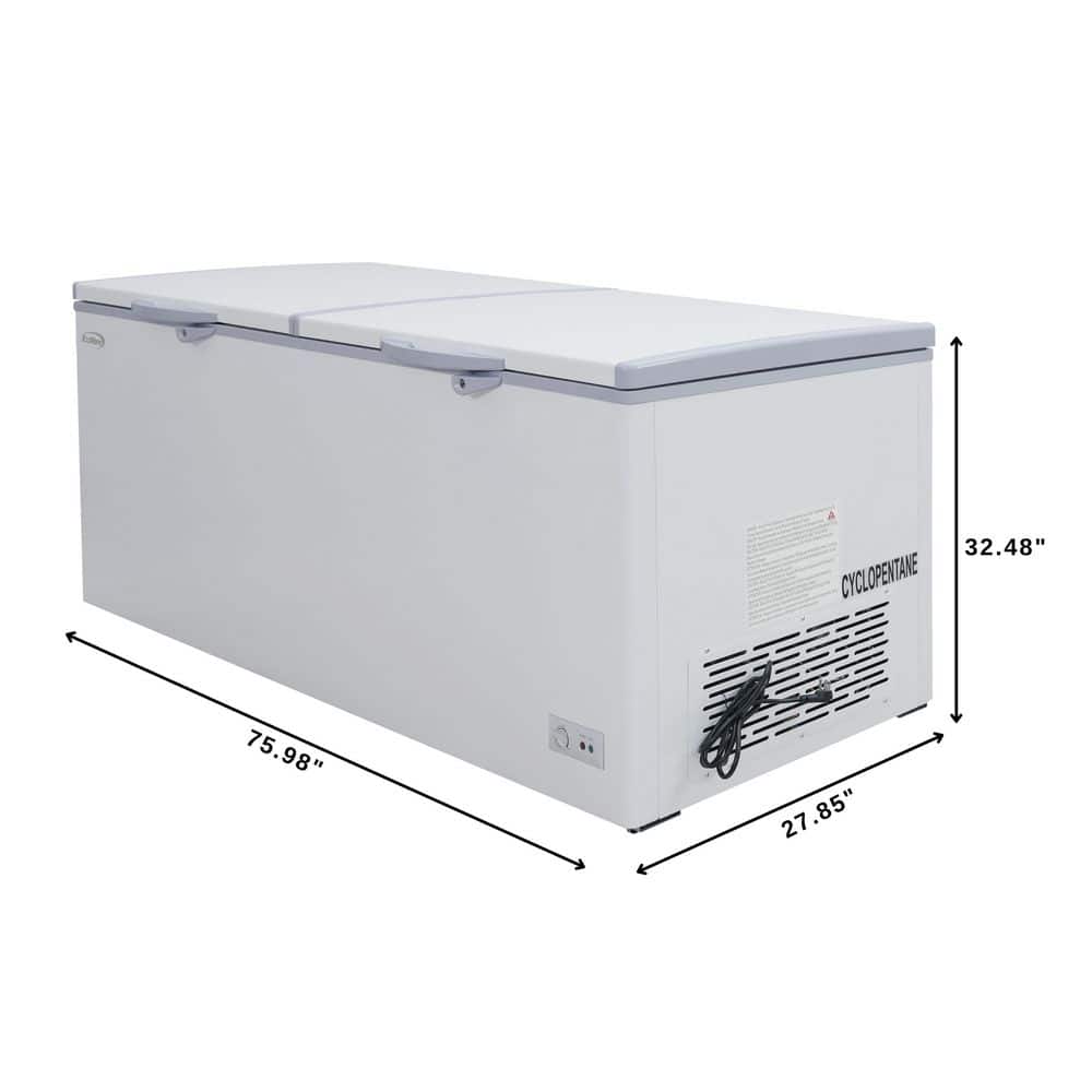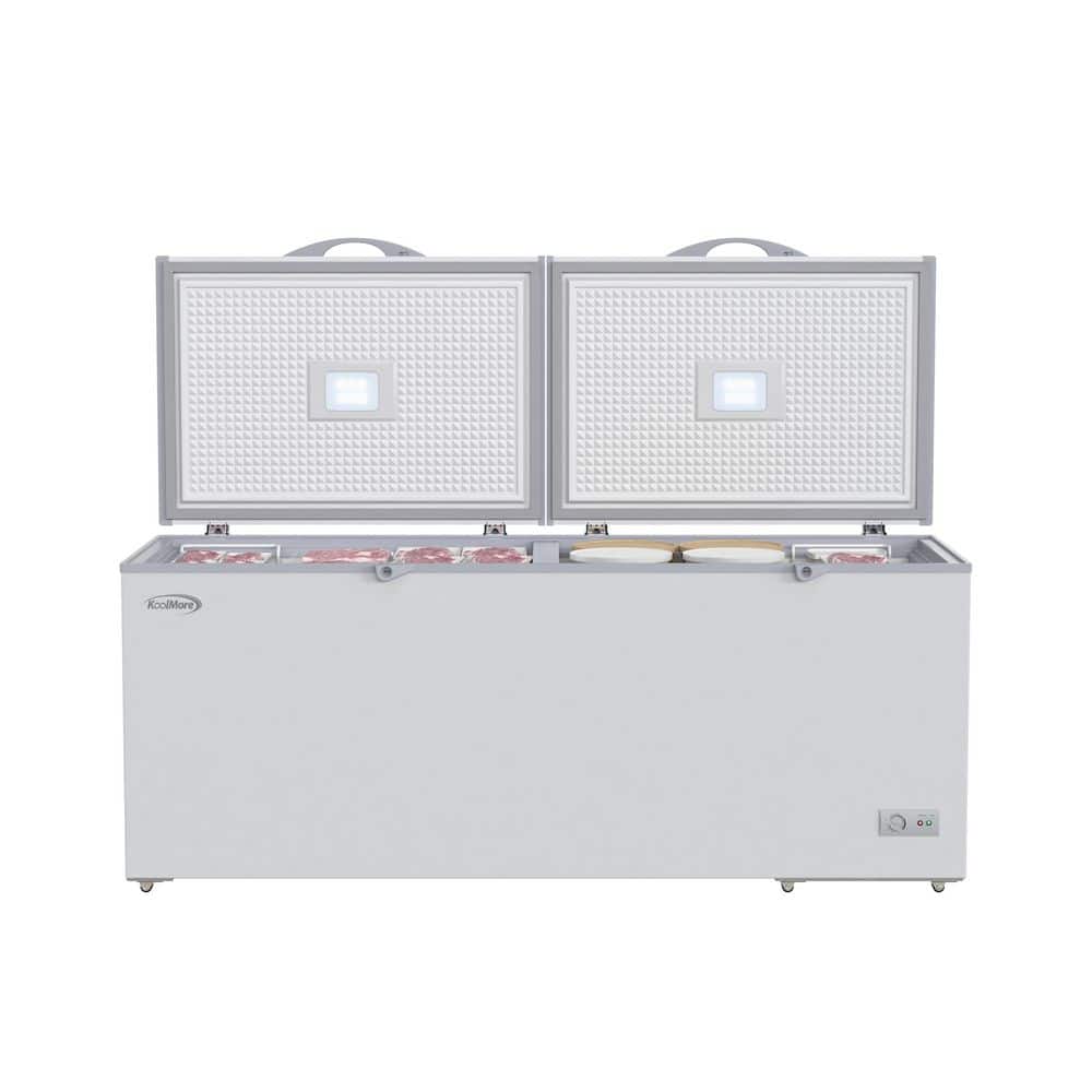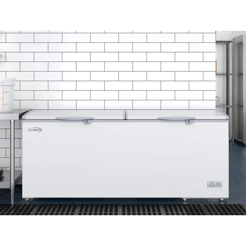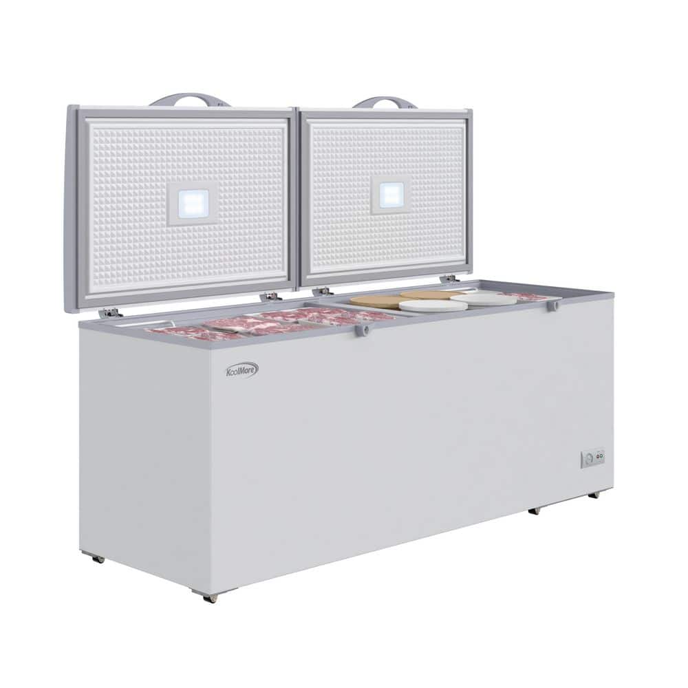 Often times you need more storage space, especially if you need to store lots of meat or every day goods for your family, guests, or customers. That's why the Koolmore Chest Freezer with 20 cu. ft. of storage provides the ideal storage area you need for storing beef, steaks, ice cream, pre-made meals, and so much more.All with eco-friendly refrigerant that helps maintain optimal temperatures better and more efficiently than standard freezers. A deep, wide-open design that offers 20 cu. ft. of space, this indoor freezer with two epoxy-coated steel baskets and two standing ledges lets you organize your food more effectively.Our compact freezer boasts a double lid design that makes it easier to open up to view the entire contents and identify and access your food more quickly.Featuring a beautiful, white painted steel exterior with a silver aluminum interior our chest freezer pairs well with almost any setting. It easily blends into your room or storage area while providing much-needed organization where you need it most.