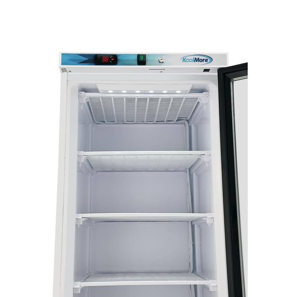 Koolmore 24 in. 12 cu.ft. Manual Defrost Upright Freezer Glass Door Commercial Reach in White Garage Ready