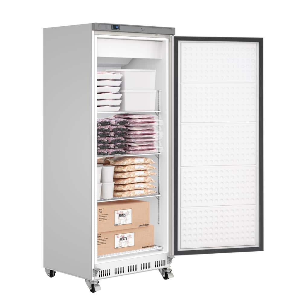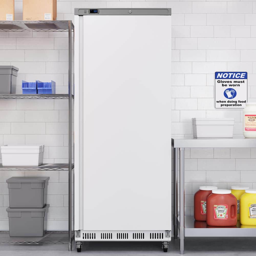 Enhance the efficiency and functionality of your commercial kitchen with our KoolMore 27 in. One Solid Door Commercial Convertible Refrigerator/Freezer in white. Designed to meet the demanding needs of your business, this versatile unit offers the perfect combination of performance, durability, and style. With its convertible design, this refrigerator/freezer allows you to customize your storage space to suit your specific requirements, whether you need additional refrigeration for fresh ingredients or extra freezer space for frozen goods. Its spacious 18 cu. ft. capacity provides ample room to accommodate your inventory, ensuring that you always have enough space to keep your kitchen organized and efficient. Crafted from high-quality stainless steel, this unit is built to withstand the rigors of a busy kitchen environment while maintaining its sleek appearance for years to come. Its energy-efficient cooling system delivers reliable temperature regulation to preserve the quality of your products and minimize food waste, while user-friendly controls make it easy to adjust settings and monitor temperatures as needed. Equipped with bright LED lighting, this refrigerator/freezer illuminates the interior, making it simple to locate and access items, even in low-light conditions.