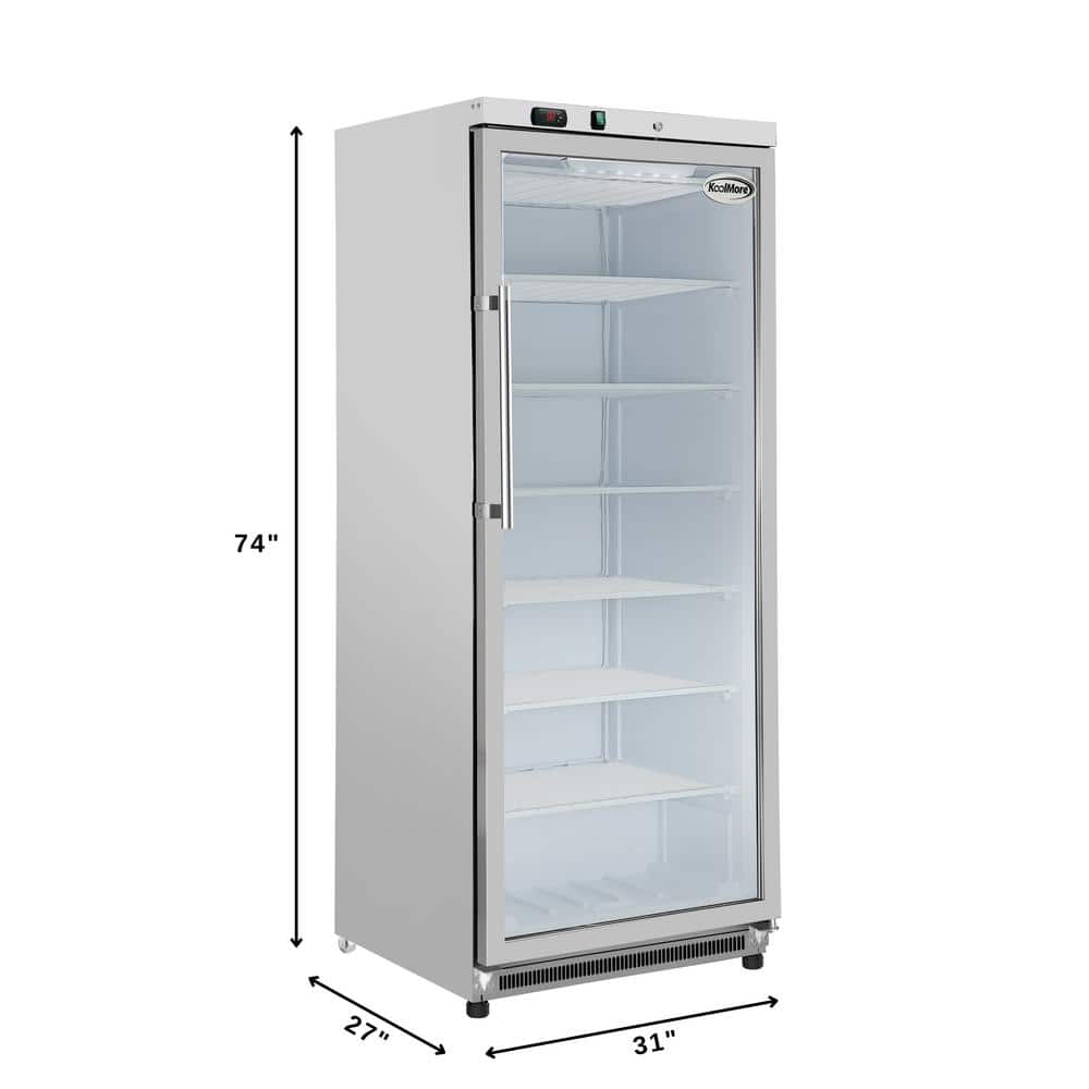 Koolmore 30 in. 21 cu. ft. Manual Defrost Upright Freezer Glass Door Commercial Reach in Stainless-Steel Garage Ready