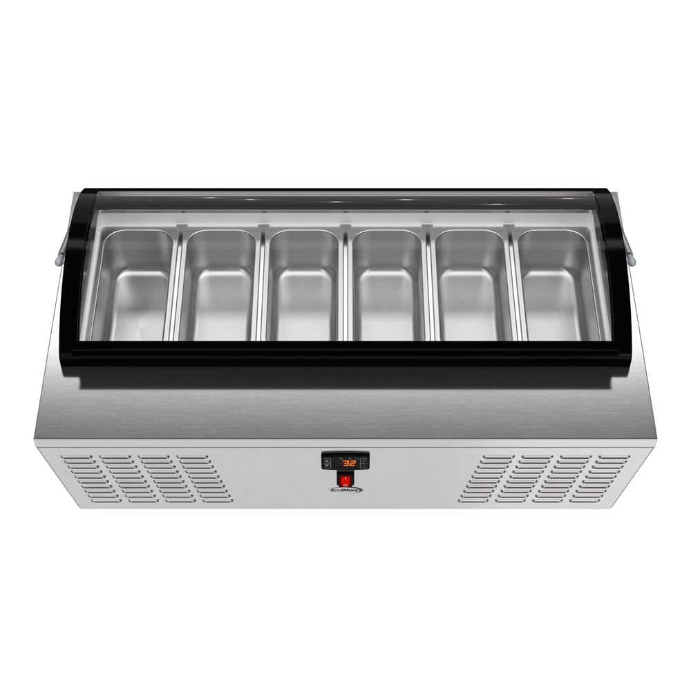 Koolmore 45 in. 3.53 cu. ft. Countertop Ice Cream Display Auto Defrost Freezer with Curved Glass Top, 6 Pans in Stainless-Steel