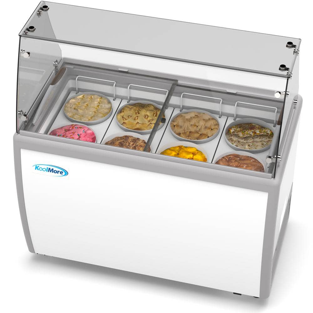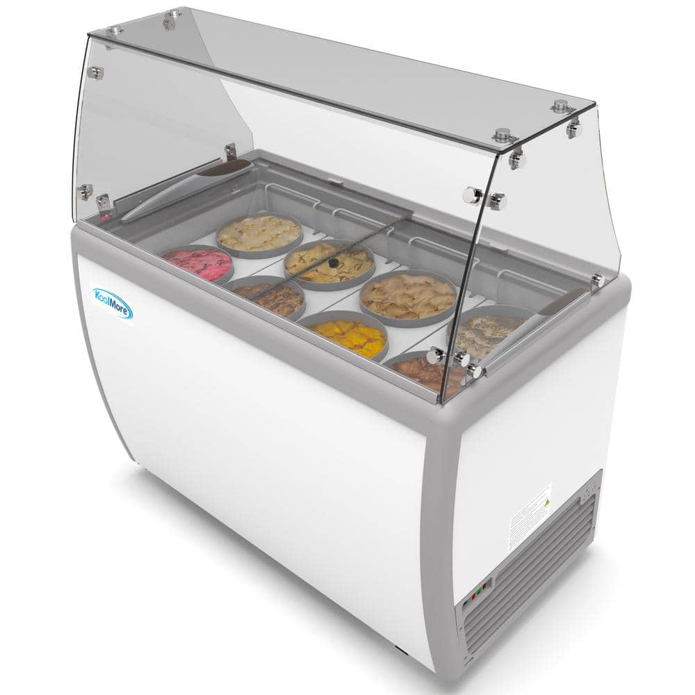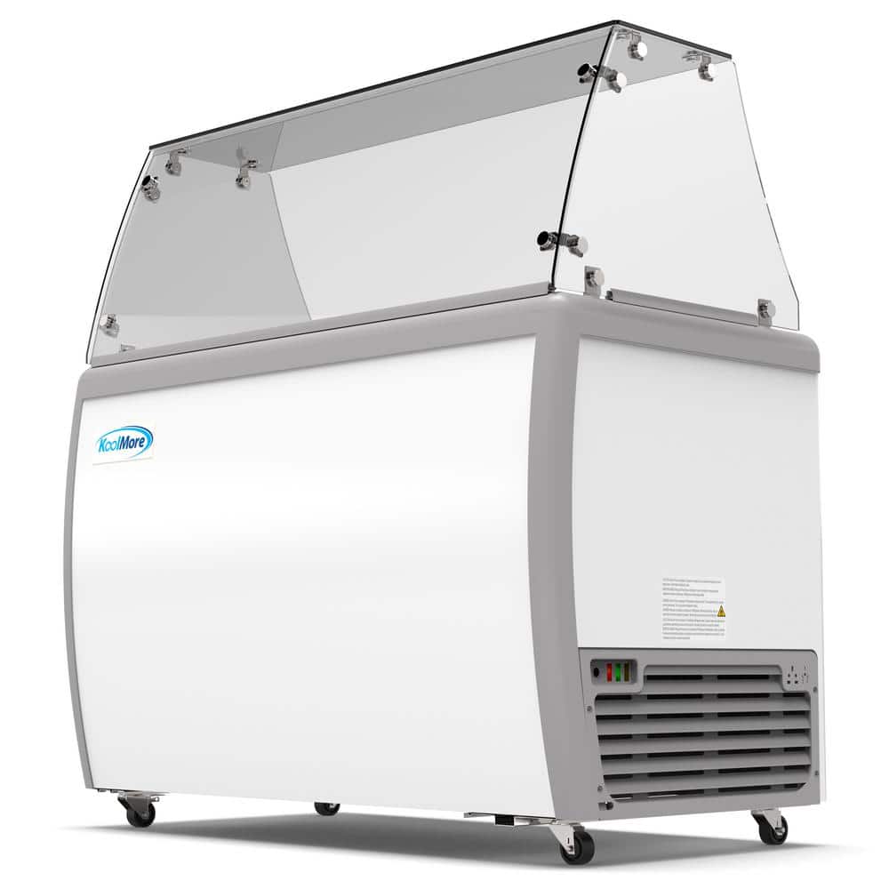 This Ice Cream Dipping Cabinet will help you store and serve Ice Cream with styleWhen the summer is at its peak nothing helps cool you down faster than a delicious ice cream cone. If you're a small business, ice cream shop, or cafe, you want to be able to display your Ice Cream like a professional, while also making it easier for customers and staff to get to the good stuff. We developed the Koolmore Ice Cream Dipping Cabinet to hold up to 8 large tubs and added a clear-glass sneeze guard to the top, providing a stylish way to display your ice cream so you can serve it while keeping it protected as people pick and choose their favorites. Made with Rust-Resistant steel walls, we want to maintain freshness and quality in your ice cream which is why the interior walls on our stainless-steel dipping cabinet are pre-coated for rust and corrosion resistance. As an all-in-one unit designed specifically for ice cream our free-standing dipping cabinet lets you store ice cream at just the right temperature, display it freely for all your customers to see, and then serve it up with fewer effort thanks to top-down access.