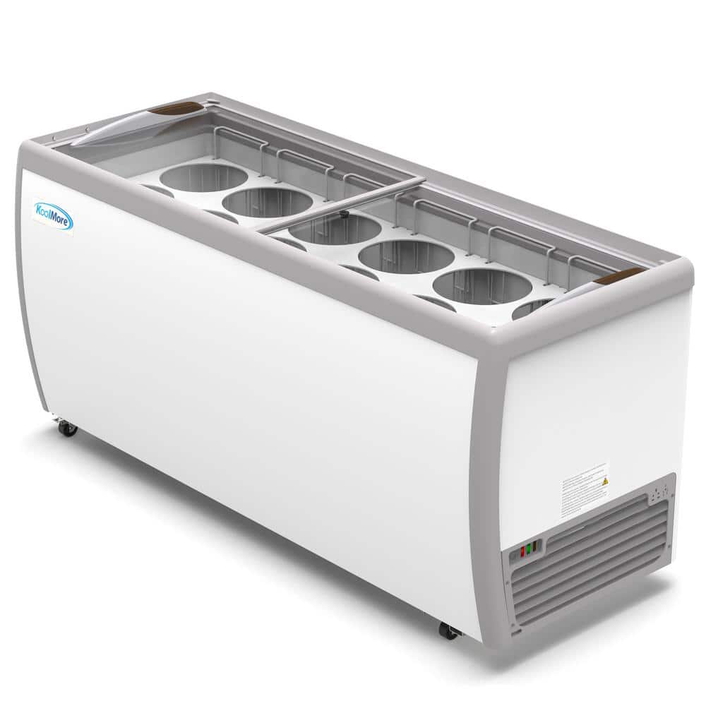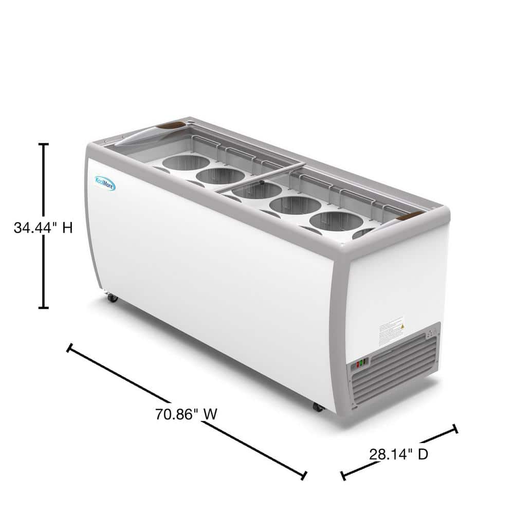 Koolmore 70 in. 12 Tub Ice Cream Dipping Cabinet Display Freezer with Sliding Glass Door.