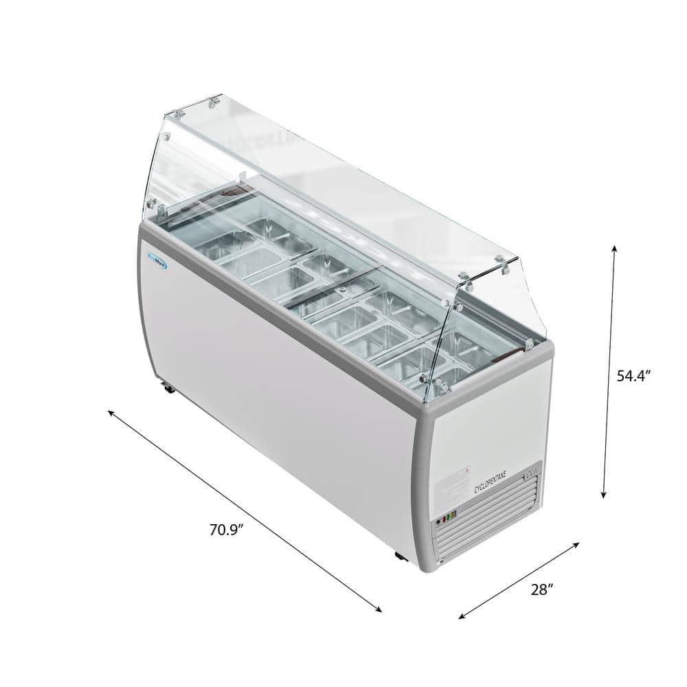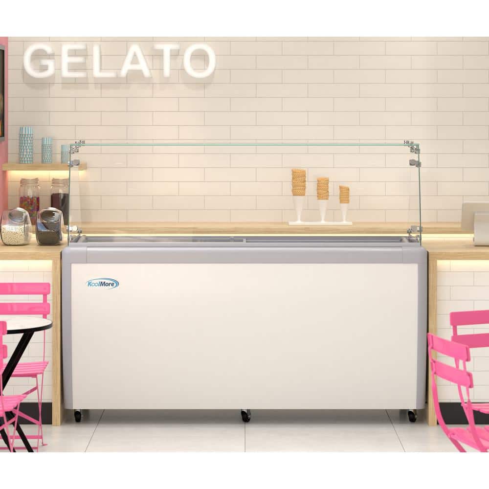 Koolmore 70 in. 20 cu. ft. Manual Defrost Gelato Dipping Cabinet Chest Freezer with Sliding Glass Door and Sneeze Guard in White