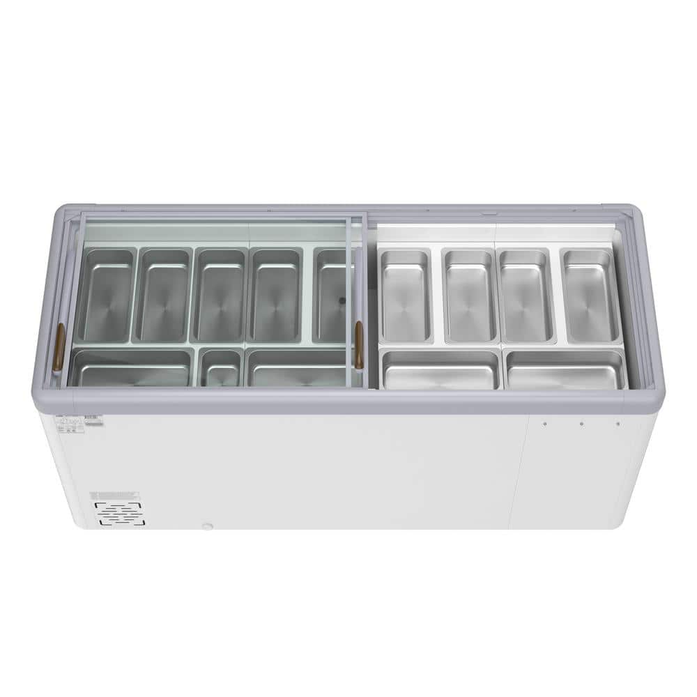 This Gelato Dipping Cabinet will help you store and serve Gelato with style; when the summer is at its peak, nothing helps cool you down faster than a delicious Gelato cone. If you're a small business, Gelato shop, or cafe, you want to be able to display your Gelato like a professional while also making it easier for customers and staff to get to the good stuff. Introducing the ultimate tool for serving and displaying your delicious gelato creations. The Gelato Dipping Cabinet. Our cabinet is designed to keep your gelato at the perfect serving temperature while showcasing your flavors to your customers. Its sleek and modern design will add a touch of elegance to any gelato shop, cafe, or restaurant. Made with Rust-Resistant steel walls, we want to maintain freshness and quality in your Gelato, so the interior walls on our stainless-steel dipping cabinet are pre-coated for rust and corrosion resistance. As an all-in-1 unit explicitly designed for Gelato, our free-standing dipping cabinet lets you store Gelato at just the right temperature, display it freely for all your customers to see, and then serve it up with less effort thanks to top-down access.