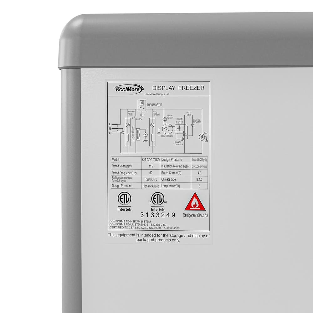 Koolmore 70 in. 20 cu. ft. Manual Defrost Gelato Dipping Cabinet Display Chest Freezer with Sliding Glass Door in White