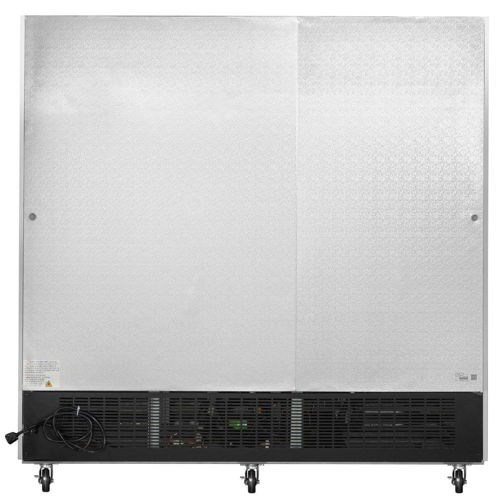 - Self-closing triple door commercial freezer holds 72 cu. ft.