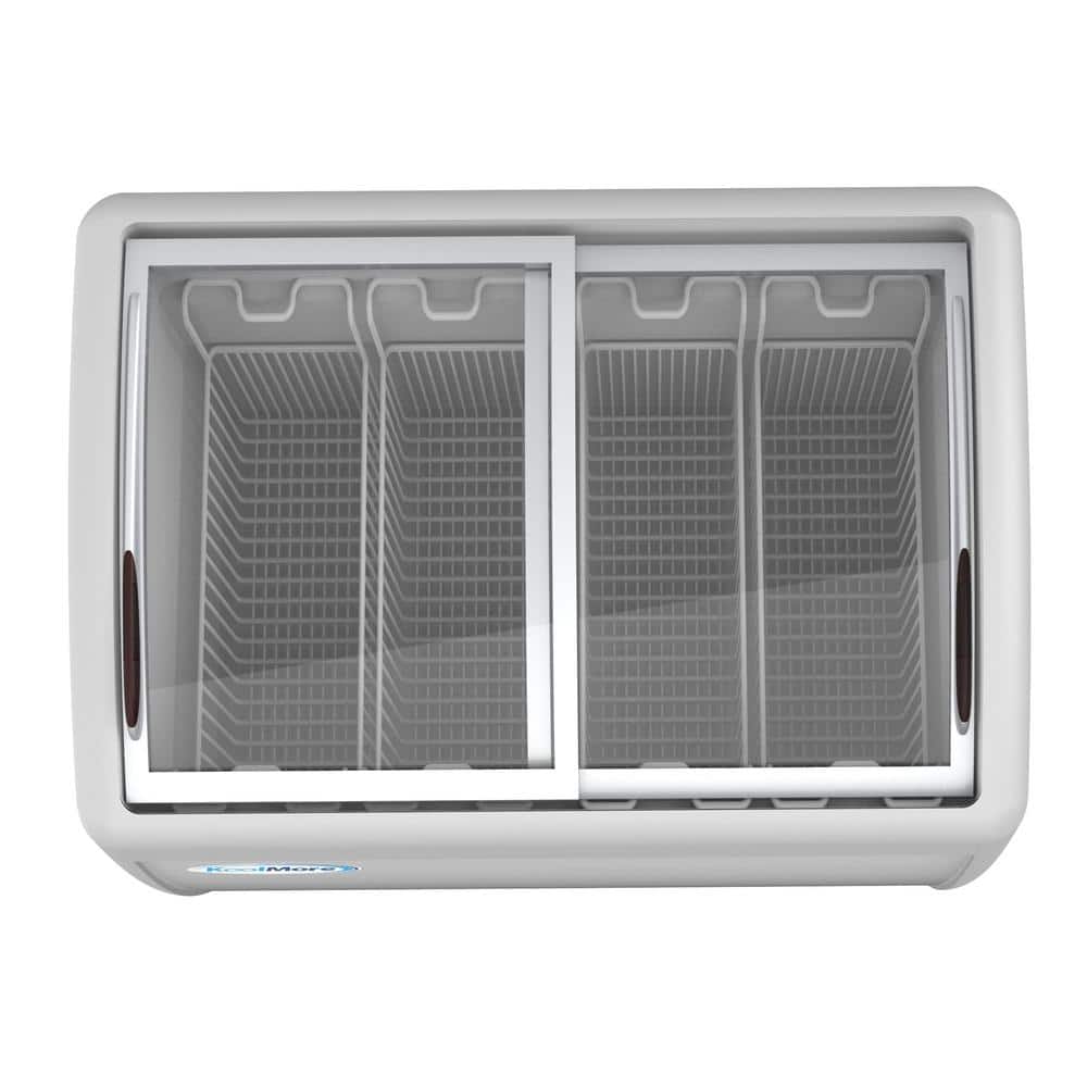 Ice cream is one of the world's most favorite sweet treats. From chocolate pints to ice cream sandwiches to orange push pops there is something that just about everyone loves. And nothing people gets more excited to enjoy an ice-cold frozen treat when the summer gets hot then when it looks cold and delicious sitting just below the glass of an ice cream display freezer. That's why we want to help you add another great addition to your convenience store or business with a professional-grade Koolmore Ice Cream Freezer Display designed to make each treat more enticing. Each ice cream freezer also has LED lighting to help make it easier to quickly identify the contents inside and to ensure crystal-clear clarity even in low-light conditions. The Koolmore freezer display also features a front-facing temperature control that prevents people from making accidental adjustments and to ensure customers don't change settings. On the bottom you'll find rolling caster wheels to make it easier to position or reposition depending on customer needs and the floor space of your business. Each glass door has a long, ergonomic handle on the side to make it easier to slide them open without needing to touch the glass to reduce fingerprints and smudges. This ice cream display freezer has a small drain on the bottom to make it easier to clean out or remove any excess moisture or liquid when de-thawing excess ice formations.