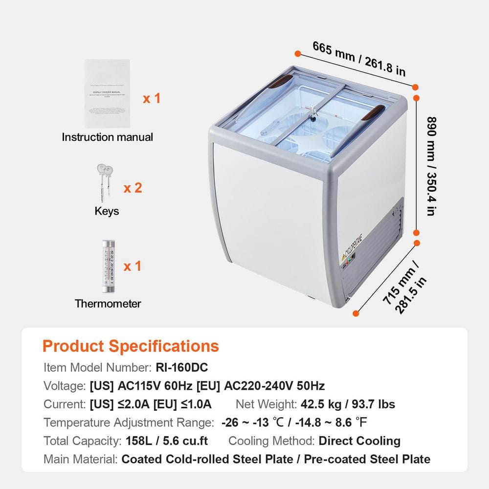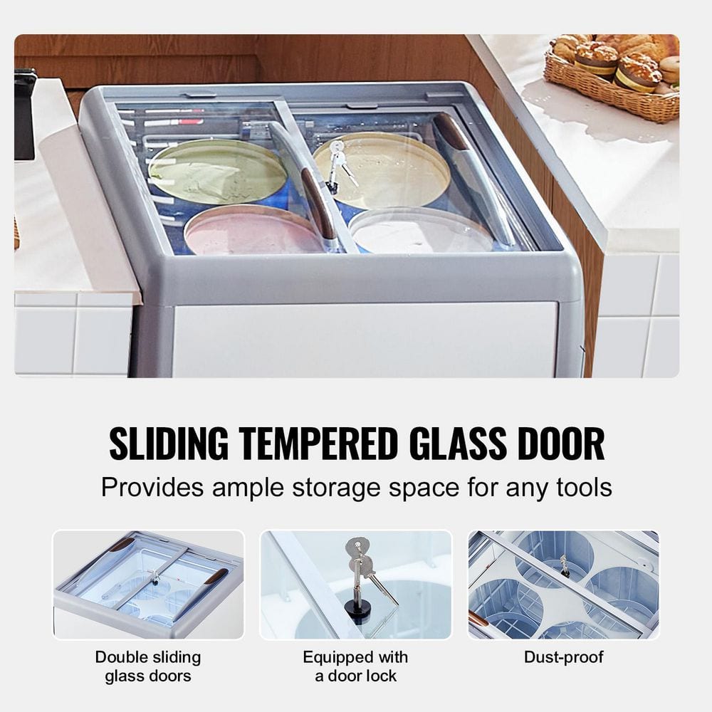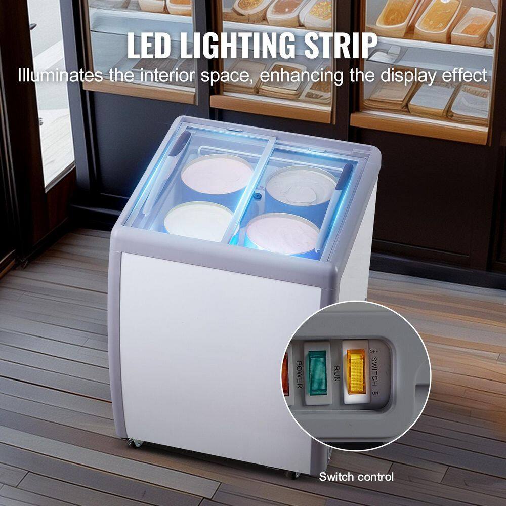 Ice Cream Display Case.158 L / 5.6 cu. ft ice cream display case with 4 large tubs that can showcase different flavors of ice cream. This freezer features multi-stage temperature control and constant temperature system, energy-saving and efficient.