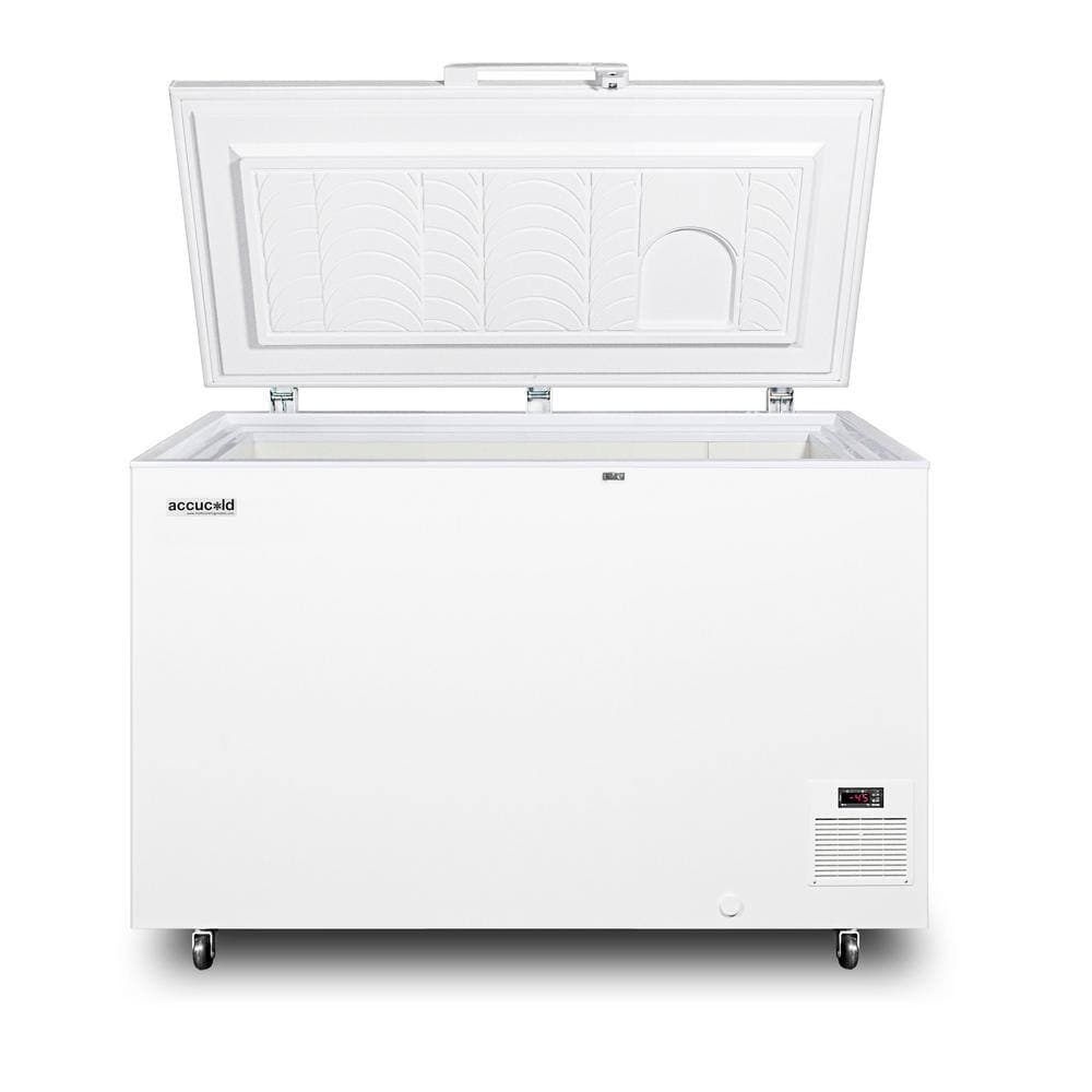 Manufactured for Summit in Denmark by ELCOLD, Accucold EL31LT is a -45°C capable chest freezer built with solid insulation for commercial, institutional, laboratory, and life science storage applications. This 11.1 cu.ft. chest freezer uses static manual defrost cooling to maintain a more stable temperature, with an externally controlled digital thermostat to ensure easy temperature monitoring. Extra thick 4-1/2 in. thick insulation offers added efficiency and reliability. Additional features include a solid, easy-grip handle complete with factory installed lock, a sturdy set of casters, and counterbalanced hinges for comfortable loading and unloading. This unit includes a factory-installed probe hole to allow users to install their own monitoring equipment. The EL31LT is UL-S listed to ANSI-NSF commercial standards and is designed to operate between -10°C and -45°C. Additional sizes are available.