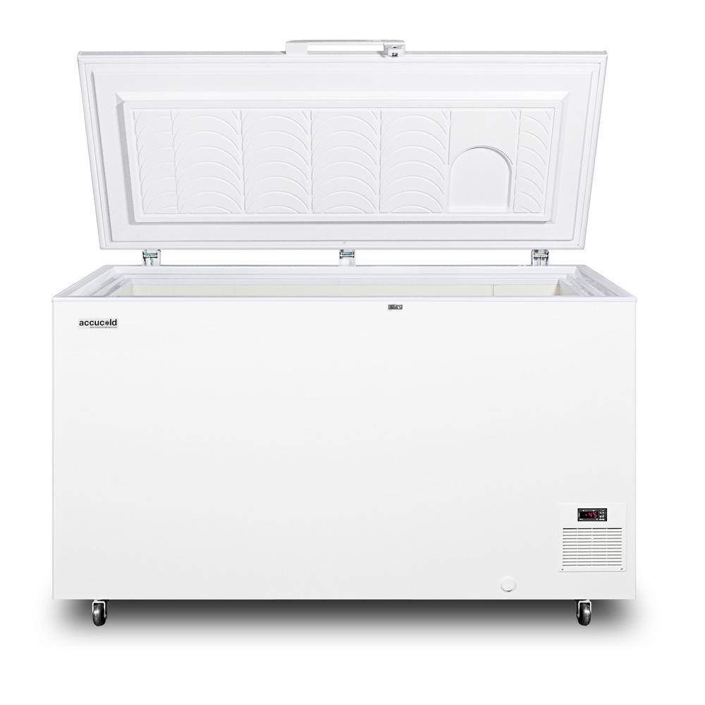 Manufactured for Summit in Denmark by ELCOLD, Accucold EL41LT is a -45º C capable chest freezer built with solid insulation for commercial, institutional, laboratory and life science storage applications. This 12.8 cu.ft. chest freezer uses static manual defrost cooling to maintain a more stable temperature, with an externally controlled digital thermostat to ensure easy temperature monitoring. Extra thick 4 ½ in. thick insulation offers added efficiency and reliability. Additional features include a solid, easy-grip handle complete with factory installed lock, a sturdy set of casters and counterbalanced hinges for comfortable loading and unloading. This unit includes a factory-installed probe hole to allow users to install their own monitoring equipment. The EL41LT is UL-S listed to ANSI-NSF commercial standards and is designed to operate between 0ºC and -45ºC. Additional sizes are available.