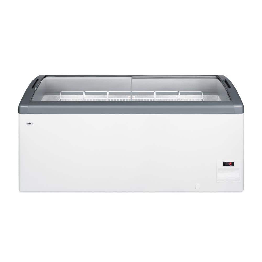 Summit Commercial's line of curved top ice cream freezers features a deluxe European design to provide quality storage and an optimum product display. Made for us by Elcold in Denmark, the FOCUS171 features two smoothly sliding tempered glass lids. The angled top offers increased visibility to help maximize impulse sales. This unit includes a removable keyed lock to allow users the option of securing their goods. The white cabinet suits any setting, while the gray lid trim offers an added touch of clean style. We include a set of sturdy commercial casters for users to install if they prefer the freezer more mobile. The digital thermostat is externally located for easy temperature management, with a wide range from -13° to 23°F to accommodate a variety of desserts. We pre-set the unit to -4°F.Inside, the FOCUS171 features hammered aluminum walls designed for lasting durability in busy commercial settings. We include six epoxy coated wire novelty baskets, ideal for storing frozen treats and designed to easily glide back and forth as needed. This unit utilizes a manual defrost cooling system with environmentally friendly R290a cooling agent and extra thick insulation to ensure added reliability. A drain is included for easy defrosting. The FOCUS171 is UL-S listed to NSF-7 commercial standards. Additional sizes are available.