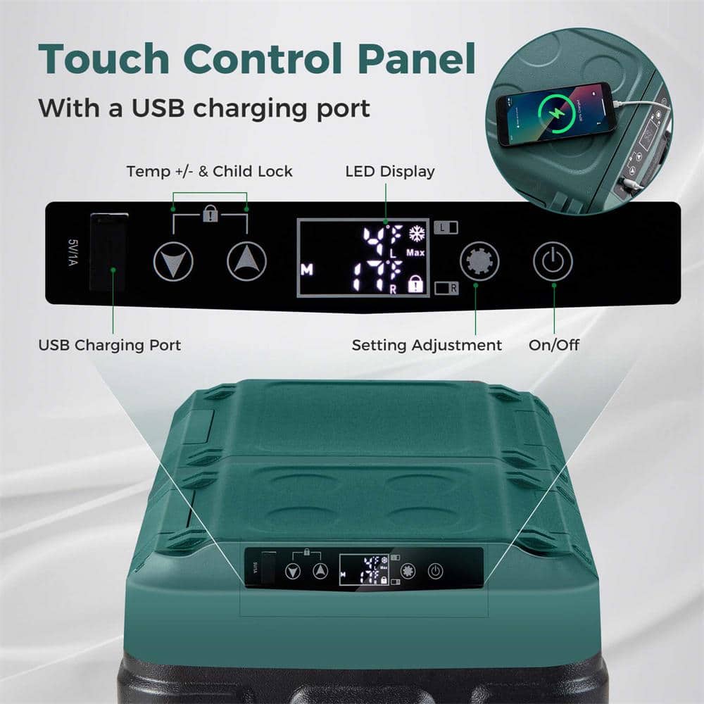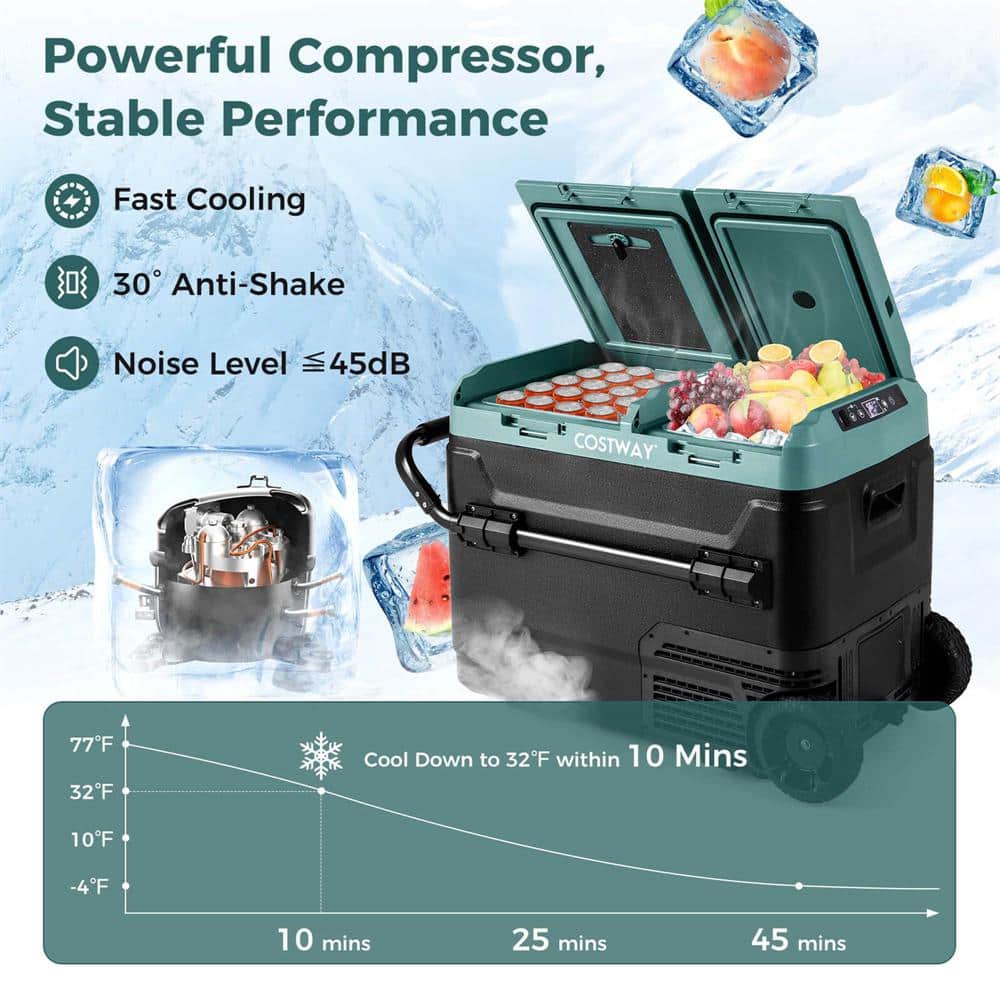 Costway 53 Quart 2.13 cu.Ft. Green Manual Car Refrigerator Portable 12/24V DC and 110-240V AC Dual Zone Car Freezer in Green