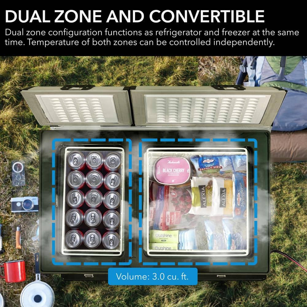 This Whynter Dual Zone Portable Fridge / Freezer offers premium quality and innovative design to your frozen/ refrigerated needs. With two separately controlled temperature zones, you can set either zone as a freezer and the other as a refrigerator or at any temperature for your specific requirements. All you need is either a standard household 110 Volt outlet or a 12 Volt power source, like an automotive battery. The internal LED lights also allow for easier, more convenient access in low-light conditions. Whether on a day trip or major expedition, you can easily keep your food and beverages chilled, or frozen with this benchtop freezer. The Whynter portable freezers should not to be confused with less effective 12 volt novelty and beverage type coolers, the Whynter portable freezer fridge is a true freezer/refrigerator which cools between 8F to 50F. A cost effective and mobile solution for your recreational and critical freezing requirements.
