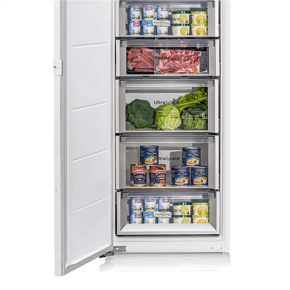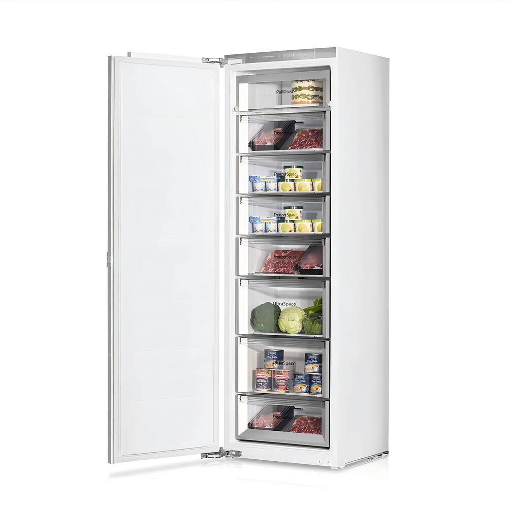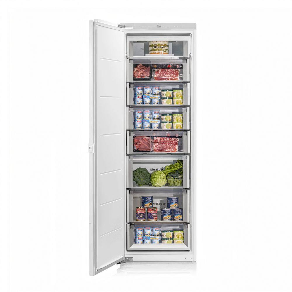 Discover the ultimate storage solution with our built-in panel ready upright freezer, designed to seamlessly integrate into your home while providing exceptional functionality. With a spacious 9.75 cu.ft capacity, this freezer is perfect for anyone needing extra storage for frozen goods, whether for a bustling family kitchen or an elegant entertainer's space.Engineered for efficiency, the temperature range from -24°C to -14°C(-11.2°F to 6.8°F) ensures that your food stays perfectly preserved. Enjoy the convenience of 8 storage bins, including two ultra space bins that pull out completely, making it easy to access all your frozen favorites. The LED digital touch control panel provides intuitive operation, allowing you to adjust settings with a simple tap.Experience peace of mind with features like the open door alarm, quick freezing function, and frost-free design, which eliminates the hassle of ice build-up. The reversible hinge allows for flexible installation options, adapting to your kitchen layout, and the adjustable leveling legs ensure a perfect fit-easily compensating for uneven floors.With low noise operation at under 38 dB, this freezer is designed to keep your space serene while efficiently performing its duties. Backed by a 1-year parts and labor warranty and a 3-year compressor warranty, you can trust in the quality and reliability of our product.
