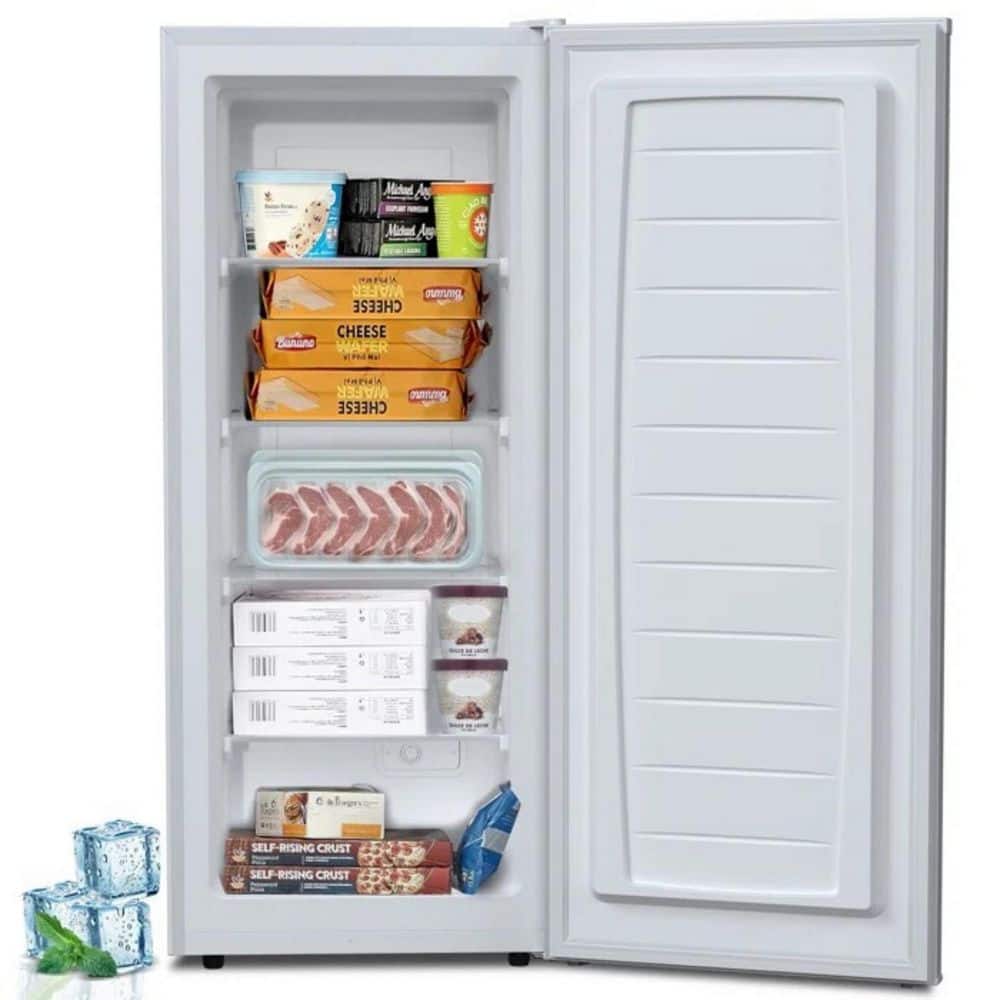 Searching for a dependable and roomy freezer. Your search ends here with our 5.9 cu. ft. capacity vertical freezer. Boasting a capacious interior, this freezer provides ample storage for all your beloved frozen items, from scrumptious frozen foods and refreshing beverages to essential ingredients. With a substantial 5.9 cubic feet of storage capacity, space constraints will be a thing of the past. The vertical design of this freezer is truly revolutionary. Unlike traditional chest freezers, it occupies significantly less floor space, making it a perfect fit for compact kitchens, basements, or garages. Effortlessly tuck it away in any corner, optimizing your available square footage without compromise.