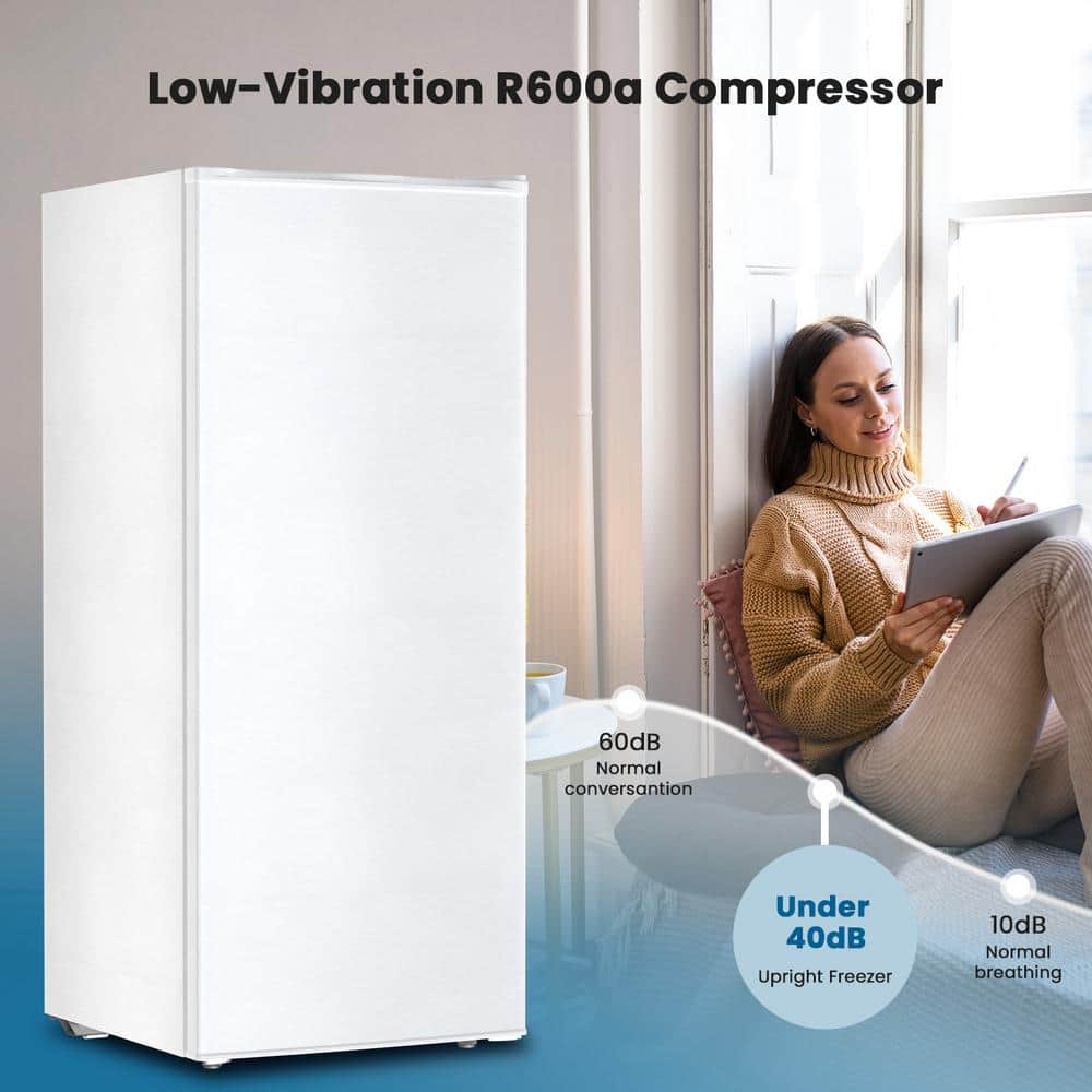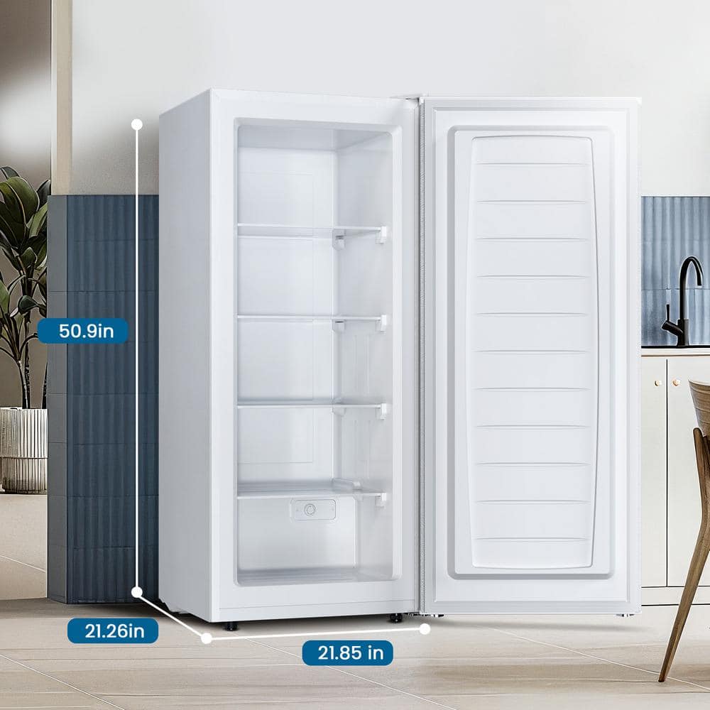 Looking for a reliable and spacious freezer. Look no further than our 5.9 cu. ft. capacity vertical freezer. This freezer offers a generous amount of storage space, allowing you to stock up on all your favorite frozen foods, beverages, and ingredients. With 5.9 cu. ft. of capacity, you'll never have to worry about running out of space. The vertical design is a game-changer. It takes up less floor space than traditional chest freezers, making it ideal for small kitchens, basements, or garages. You can easily fit it into any corner without sacrificing valuable square footage.