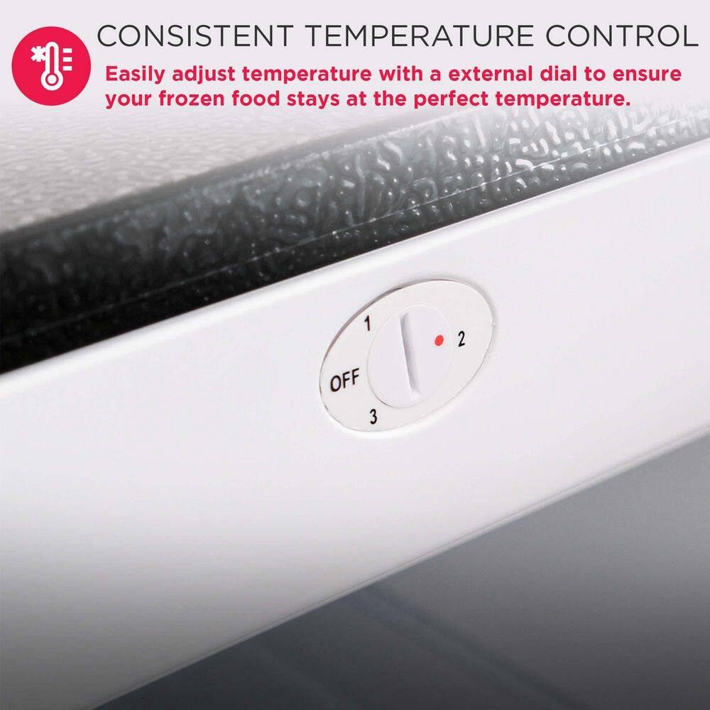The 184 L (6.5 cu. ft.) Frigidaire upright freezer makes it easy for you to keep your food preserved for extended periods. It has an adjustable thermostat so you can prioritize temperatures and energy consumption for your specific needs. There are 6 wire shelves that allow you to stock this upright freezer with TV dinners, meat, fruit, ice cubes and more. Its platinum color makes it easy for you to coordinate this freezer with virtually any decor scheme. You can reverse the door to open from left or right, for access in virtually any space. The freezer has adjustable leveling legs for stabilization on uneven floors.