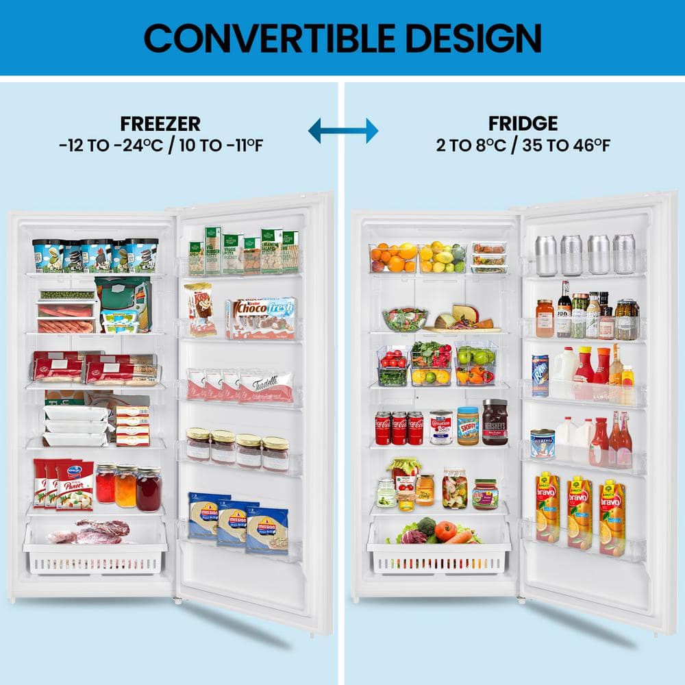 - 21 Cu. Ft (595L) convertible upright freezer/refrigerator