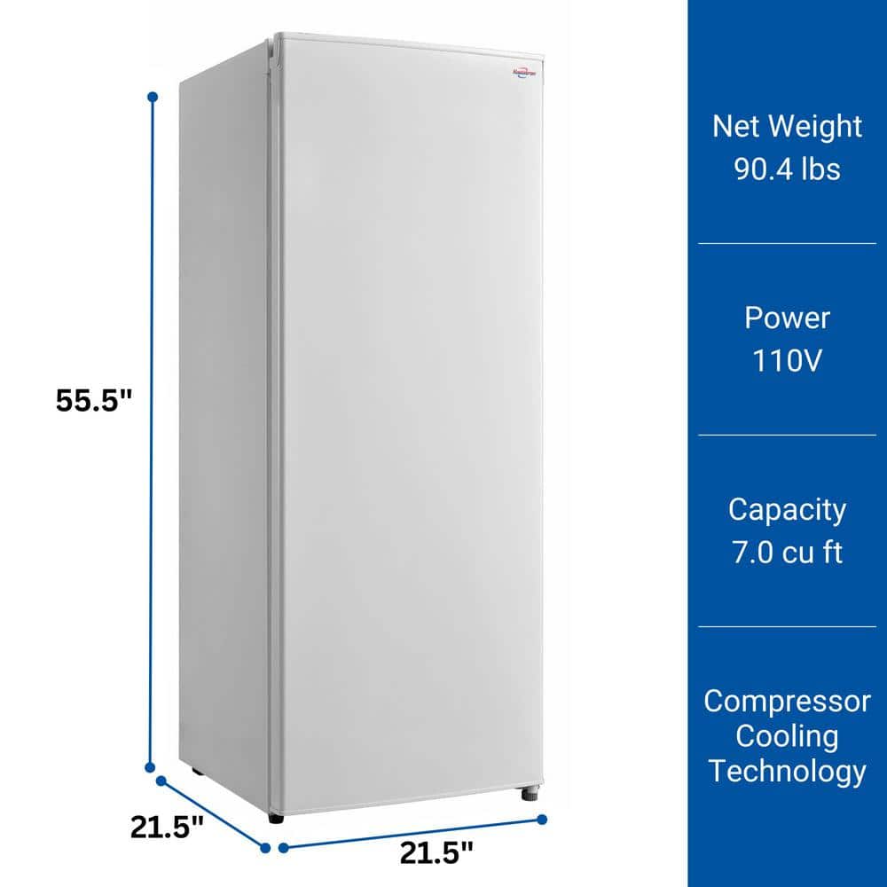 Koolatron Garage-Ready Upright Freezer 7.0 cu. ft.. (198L) White, Low-Frost, Flat Back, Glass Shelves
