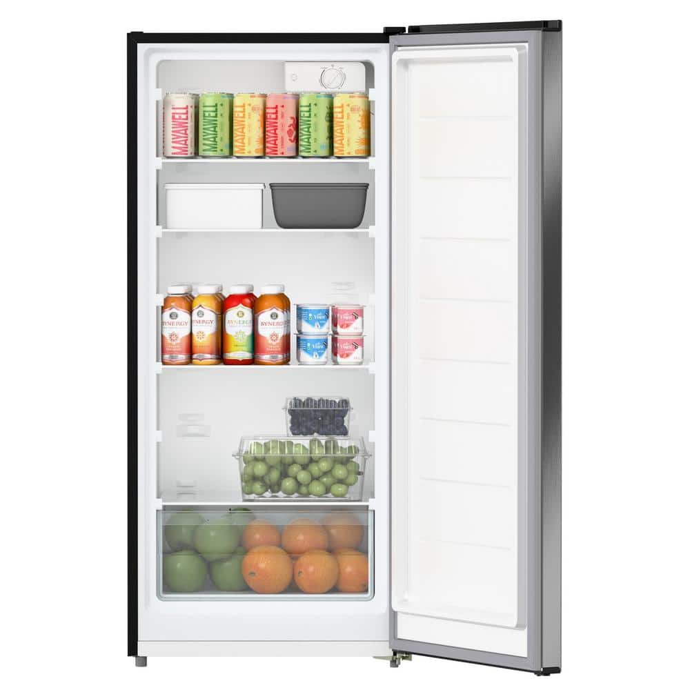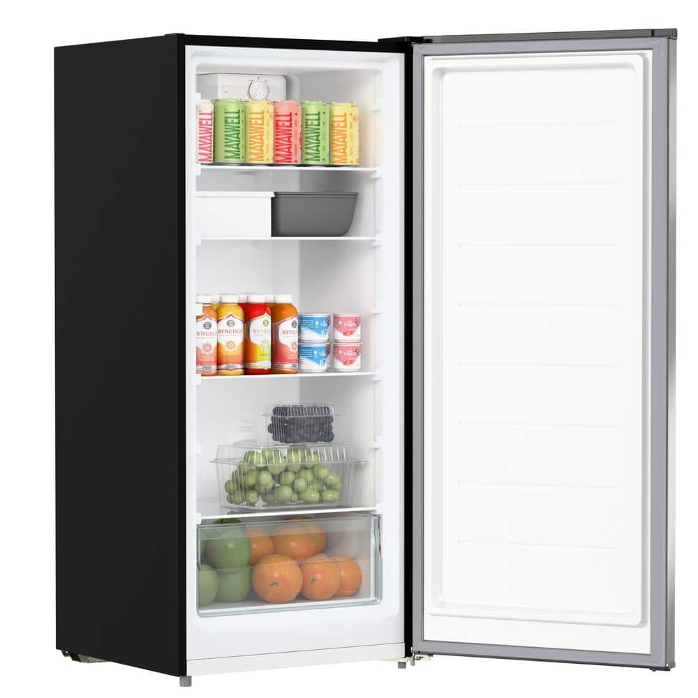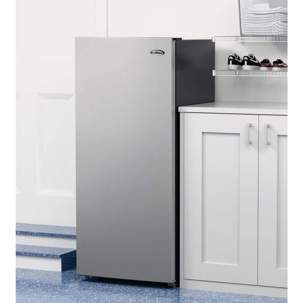 KoolMore 7 Cu. Ft. Convertible Upright Refrigerator/ Freezer in Stainless-Steel.The KoolMore 7 cu. ft. Convertible Upright Freezer/Refrigerator is a versatile and efficient appliance, perfect for residential use.Its exterior and interior are both finished in sleek white metal, offering a clean and modern look that complements any setting.This unit features 4-sided cooling with D-tube technology, ensuring rapid and uniform cooling throughout. It boasts adjustable shelves with a 66 lbs. capacity each, making it easy to organize different items.The appliance is convertible, allowing users to switch between refrigerator and freezer modes in just 180 minutes, providing flexibility for various storage needs. With mechanical temperature control, users can easily set and monitor the temperature, ranging from 34-50°F for refrigeration and -11-10°F for freezing.The unit is also garage-ready, operates quietly at 40 dB, and includes a reversible door for convenient access.UL and ADA compliance ensure it meets safety and accessibility standards, making it a reliable choice for any household.